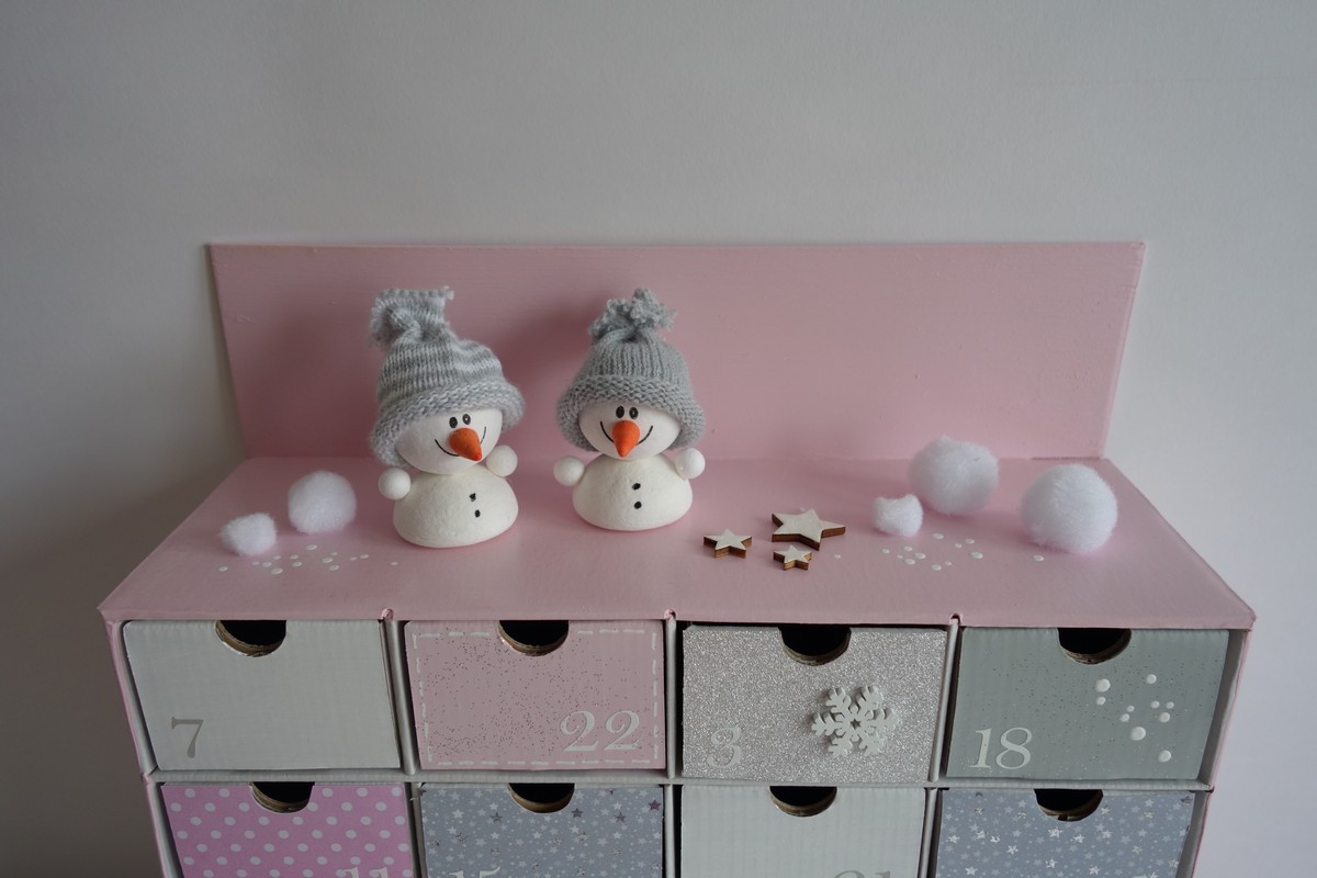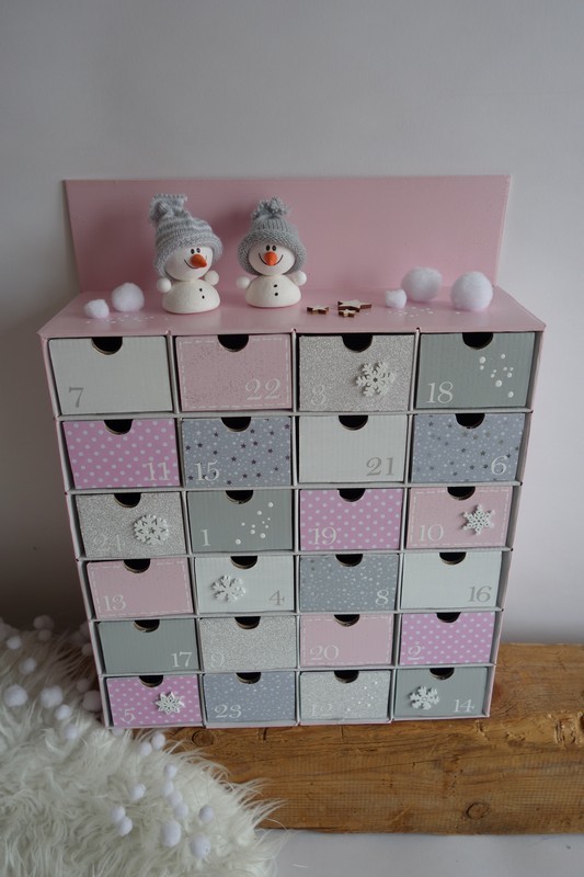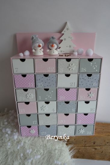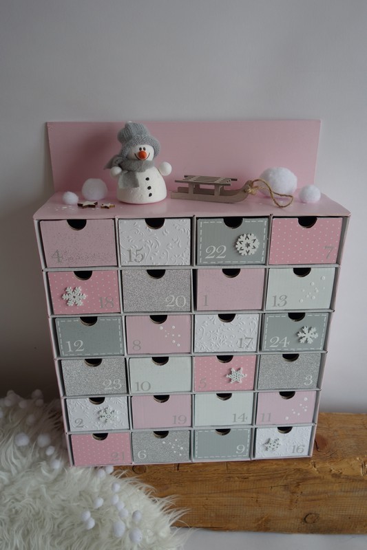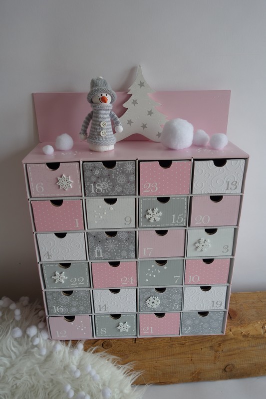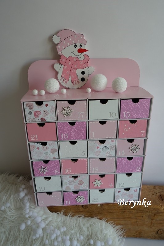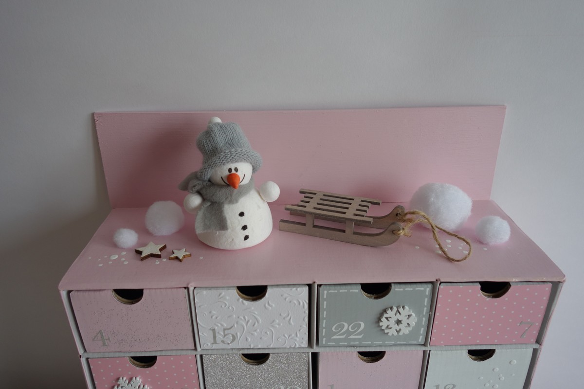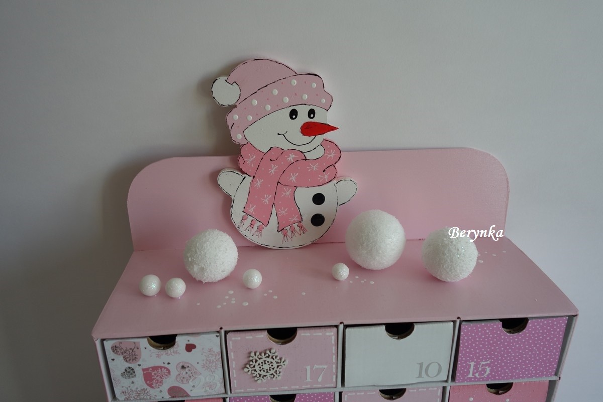 Adventní kalendář *pudrově růžový* se sněhulákem - různá provedení