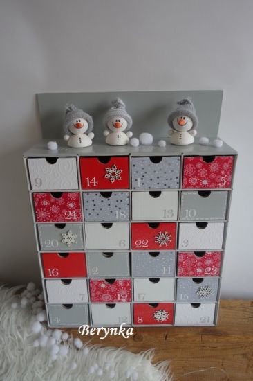 Adventní kalendář *šedo-červený* - se sněhuláky - různá provedení
