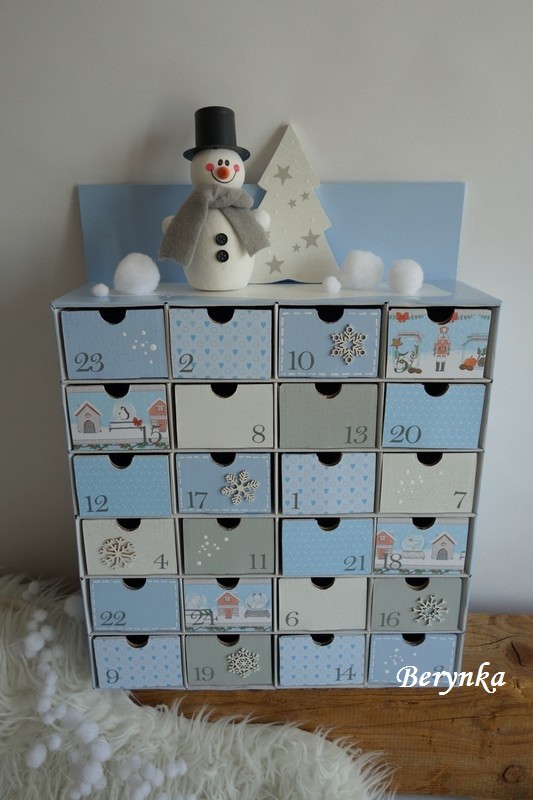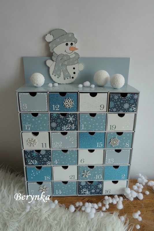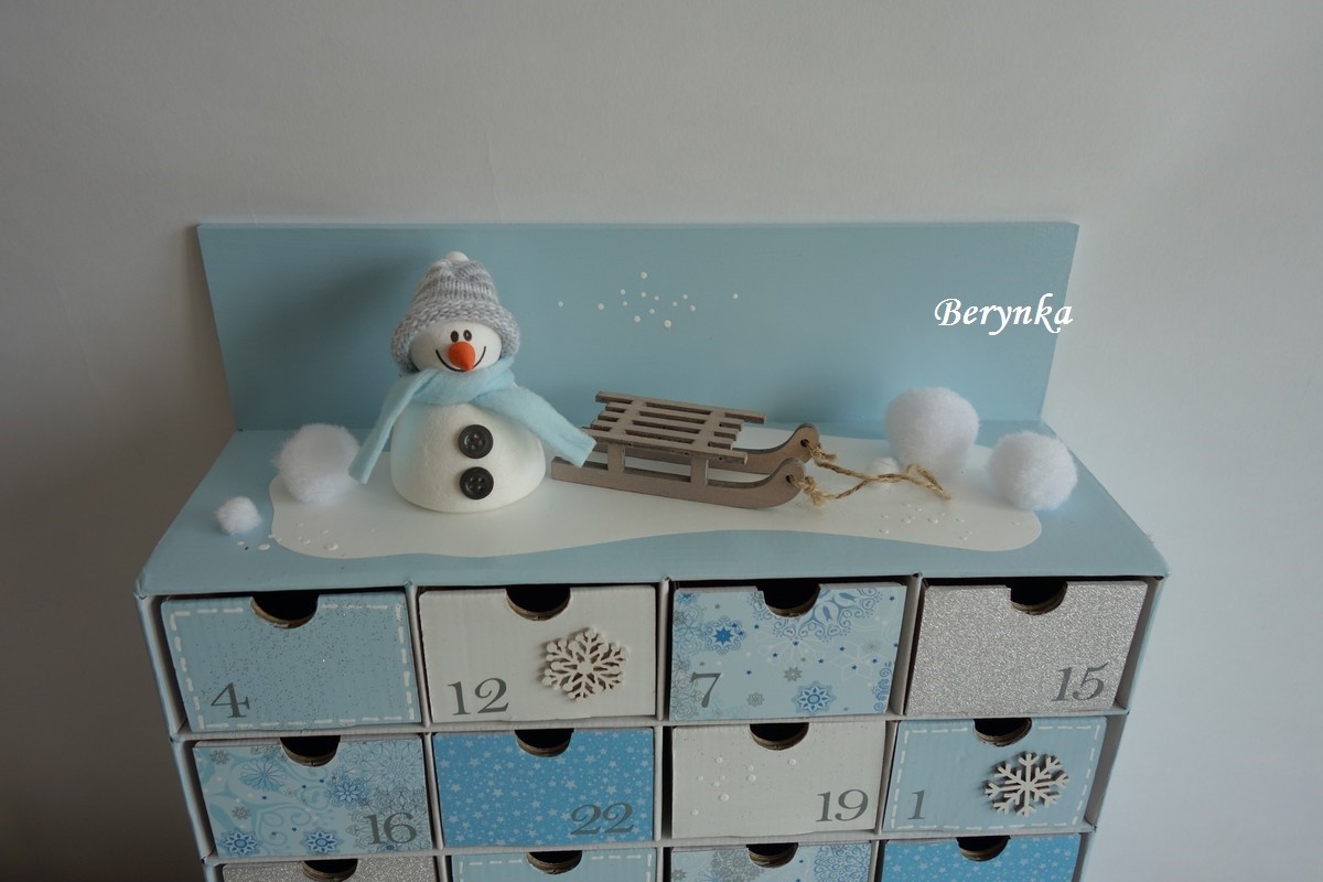 Adventní kalendář *světle modrý* se sněhulákem - různá provedení