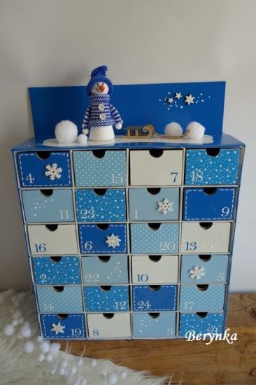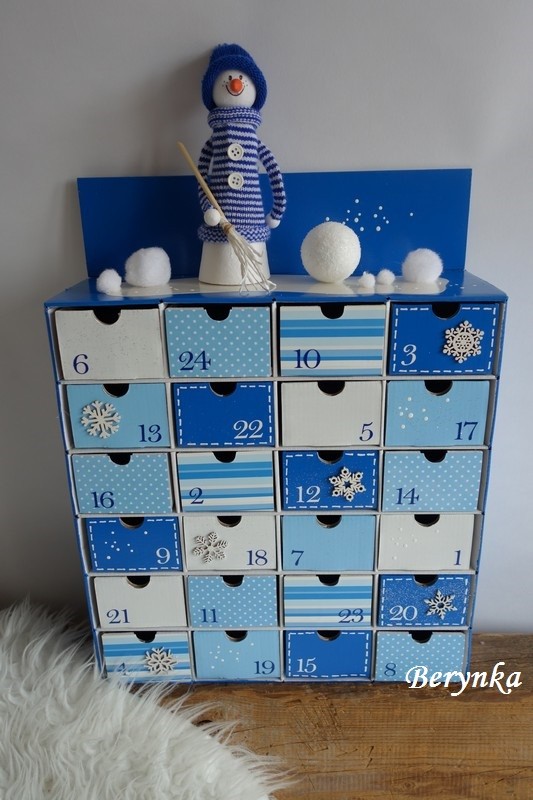 Adventní kalendář *tmavě modrý* se sněhulákem - různá provedení