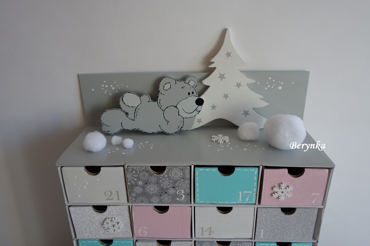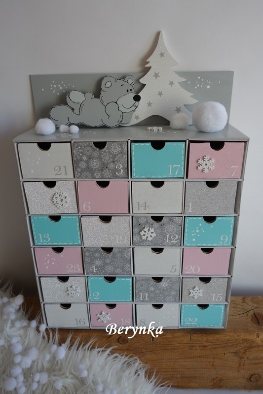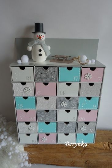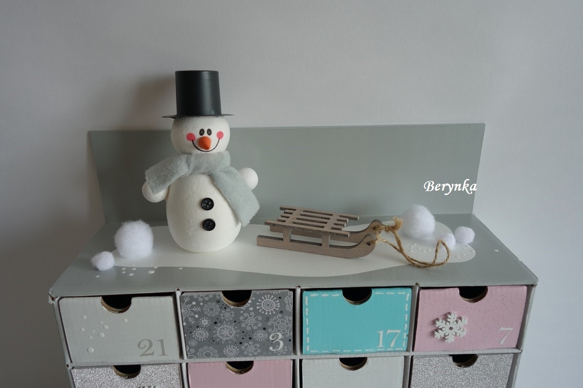 Adventní kalendář *tyrkysovo-růžový* se sněhulákem