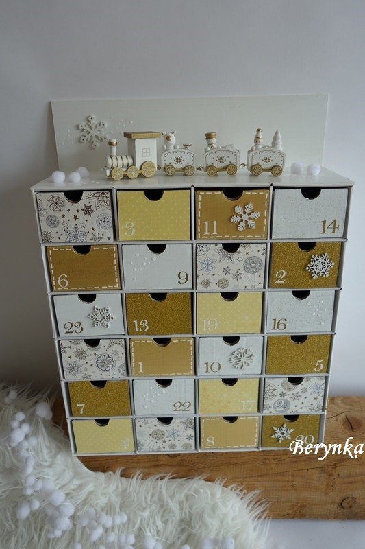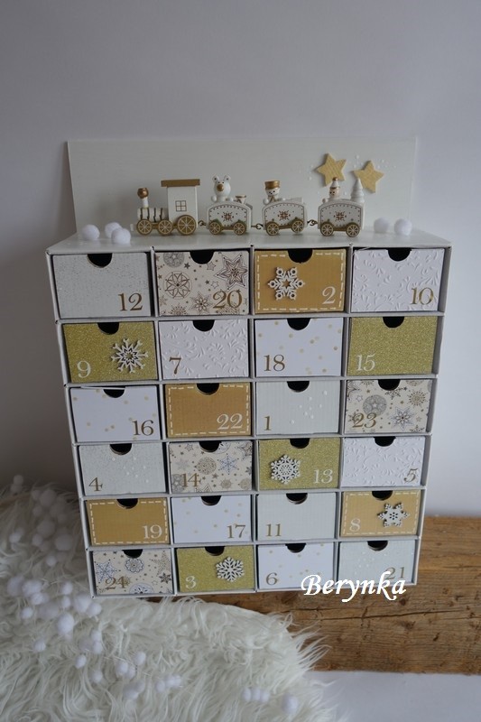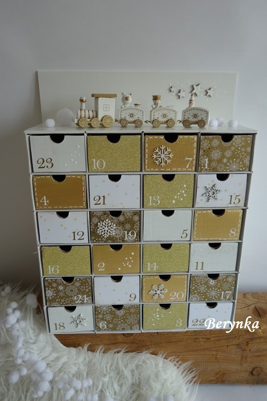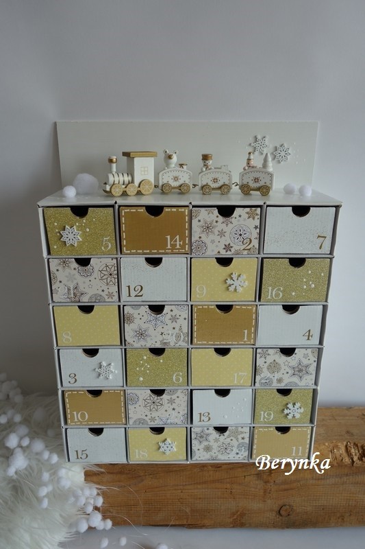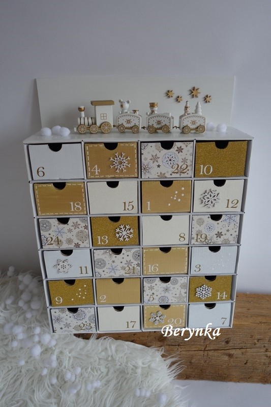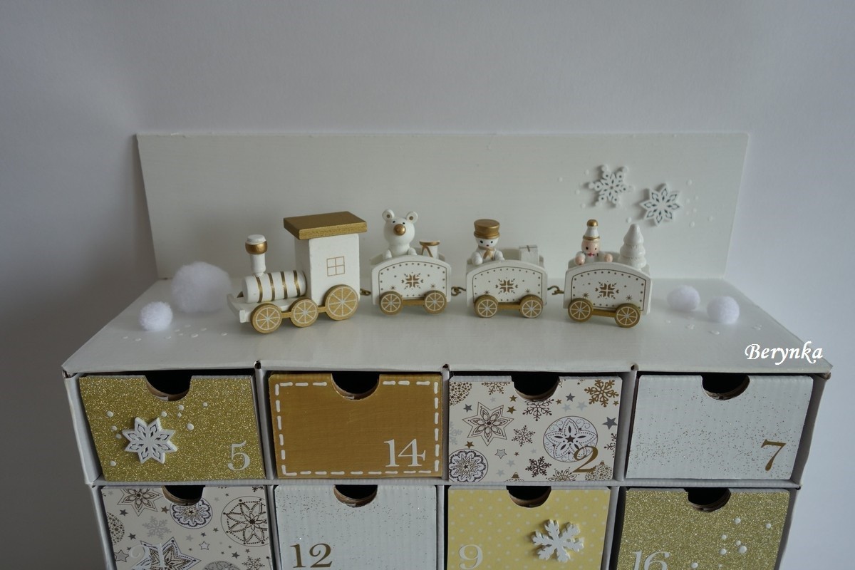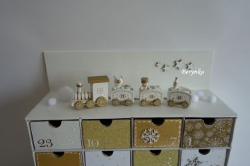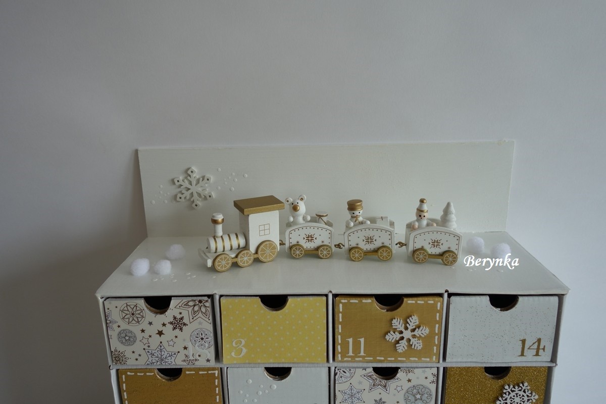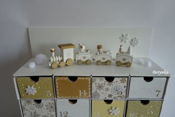 Adventní kalendář *zlato-bílý* s mašinkou - různá provedení