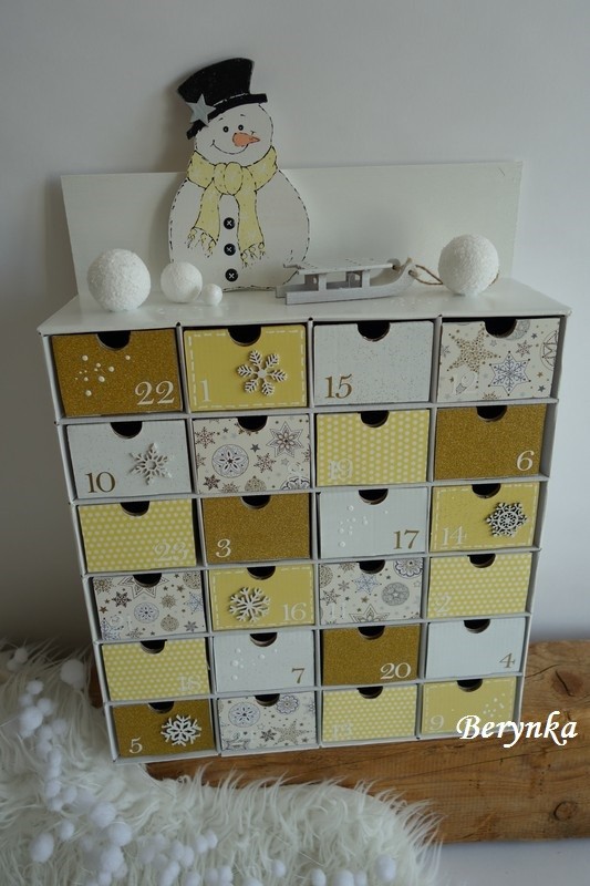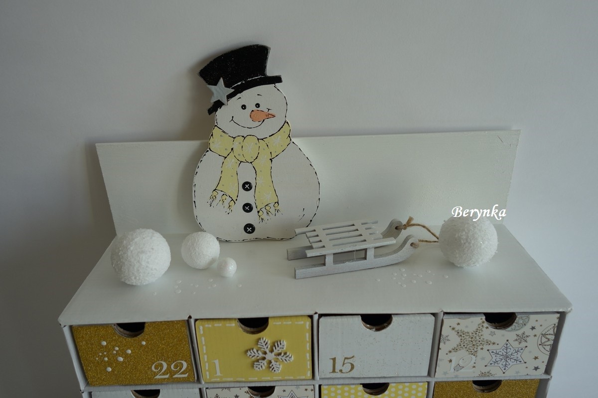 Adventní kalendář *zlato-bílý* se sněhulákem - různá provedení