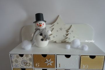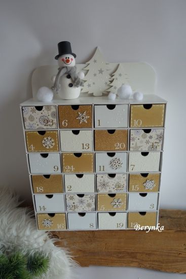 Adventní kalendář bílo-zlatý se sněhulákem - různá provedení