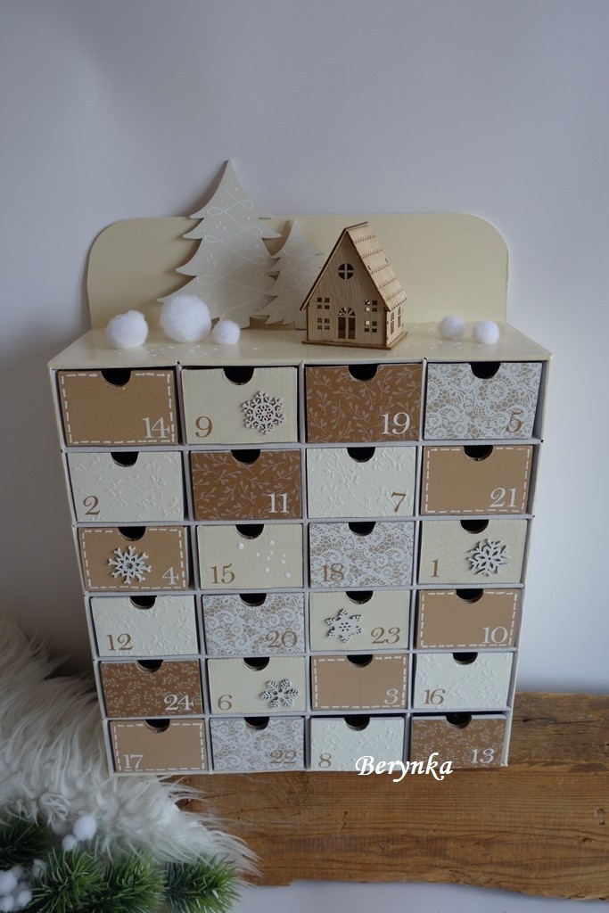 Adventní kalendář krémový s chaloupkou - různá provedení