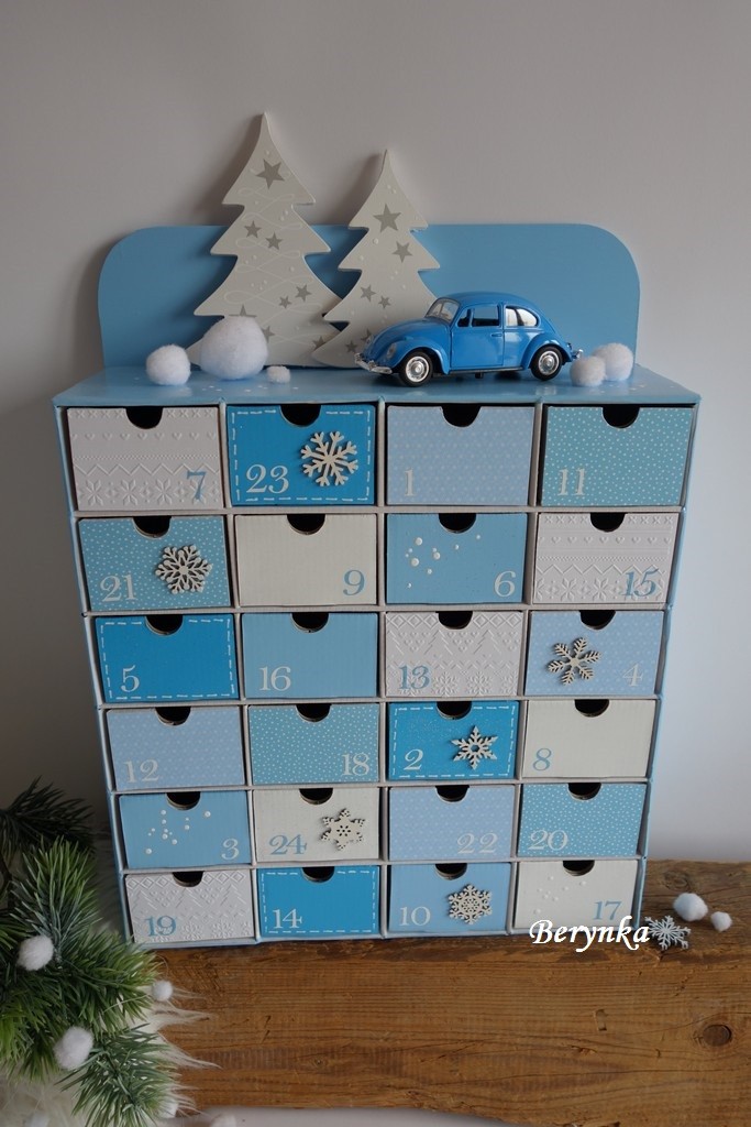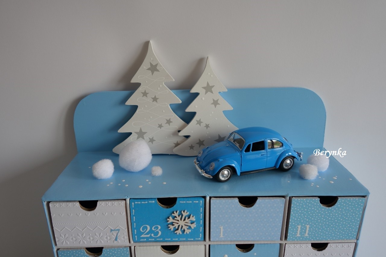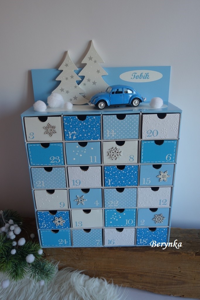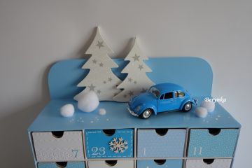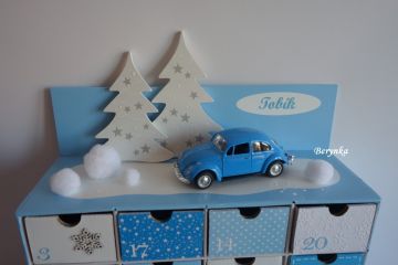 Adventní kalendář modro-bílý s autíčkem - různá provedení