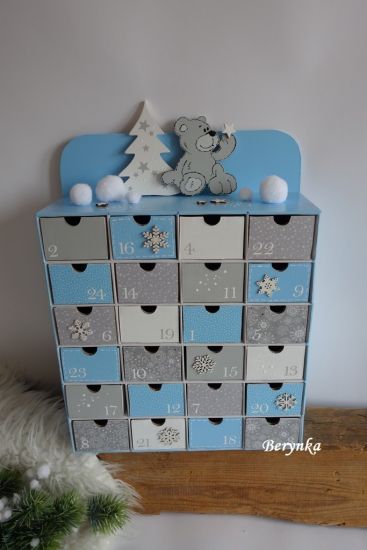 Adventní kalendář modro-bílý s medvídkem - různá provedení