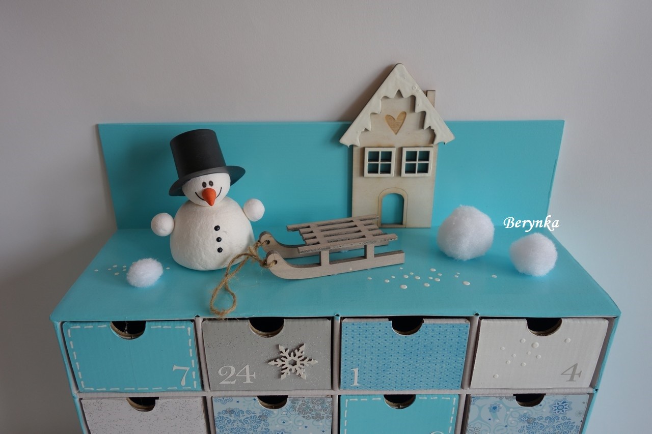 Adventní kalendář tyrkysový se sněhulákem - různá provedení