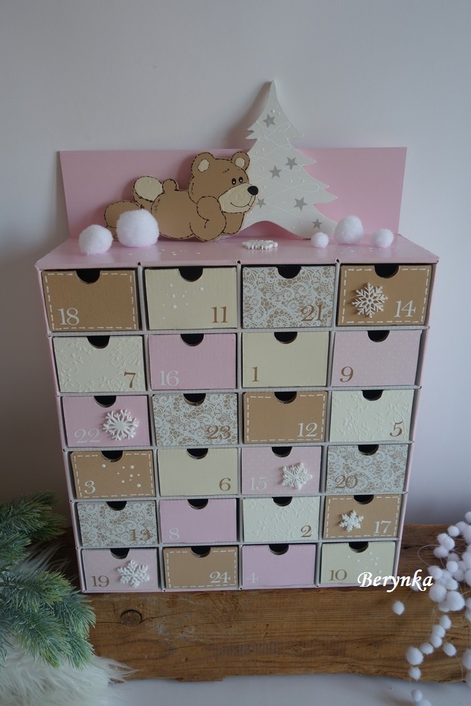 Adventní kalendář růžovo-kávový s medvídkem