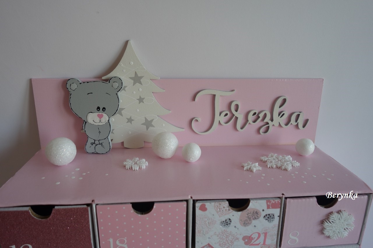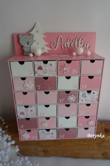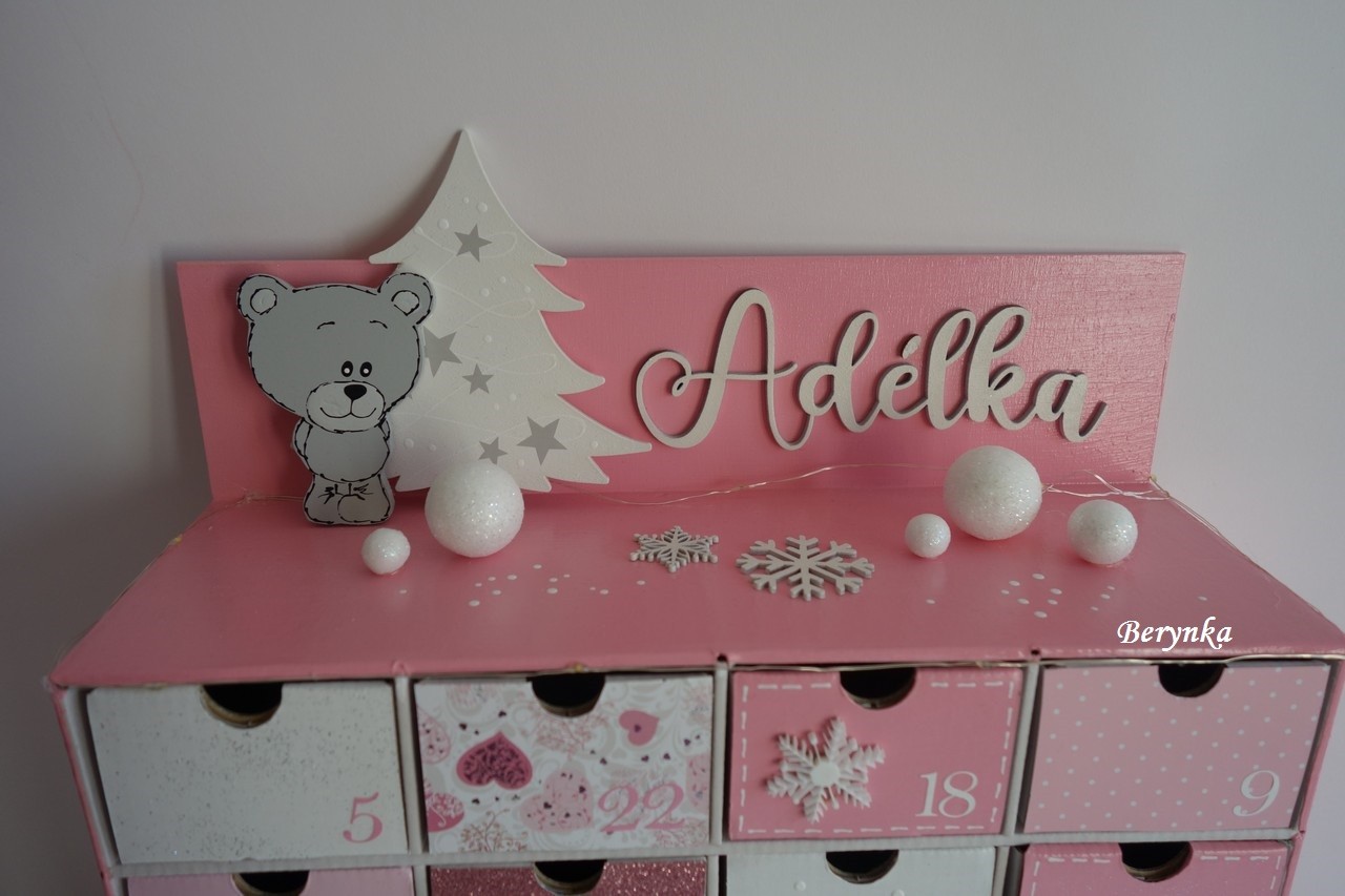 Adventní kalendář růžový s méďou