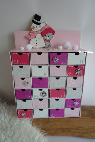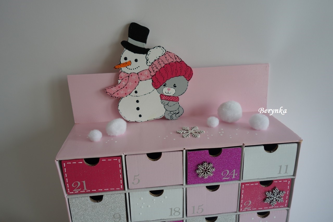 Adventní kalendář růžový se sněhulákem a kočičkou - různá provedení