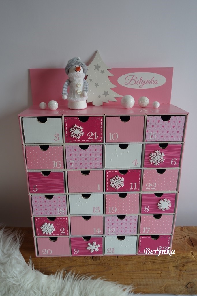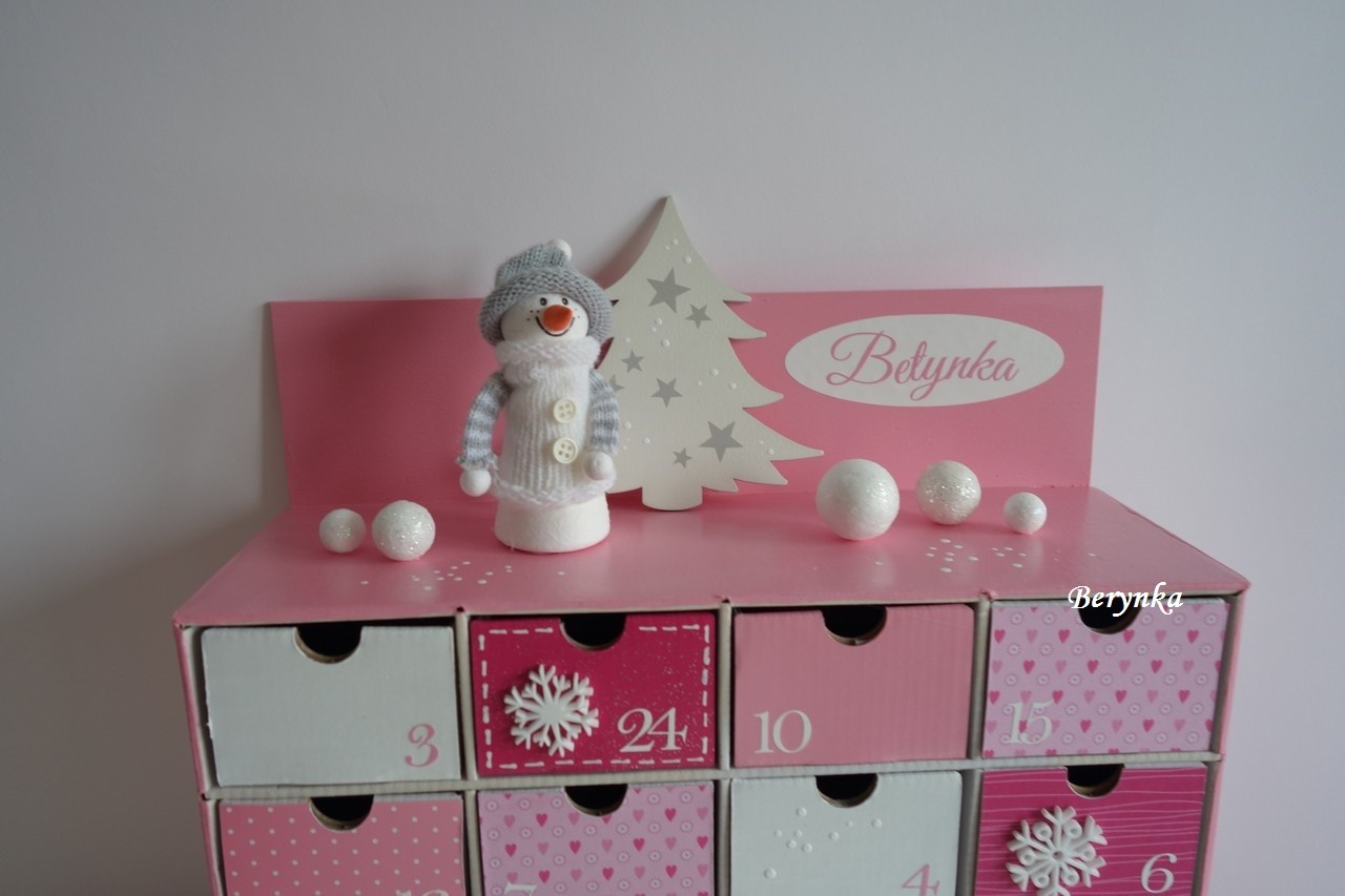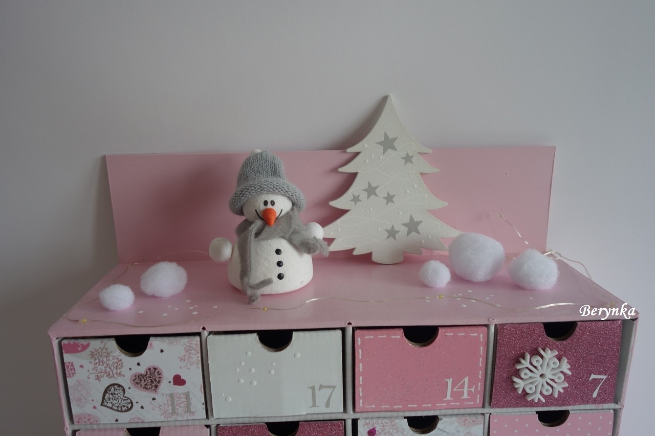 Adventní kalendář růžový se sněhulákem