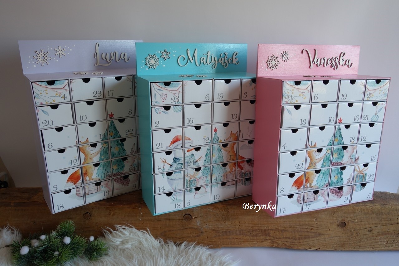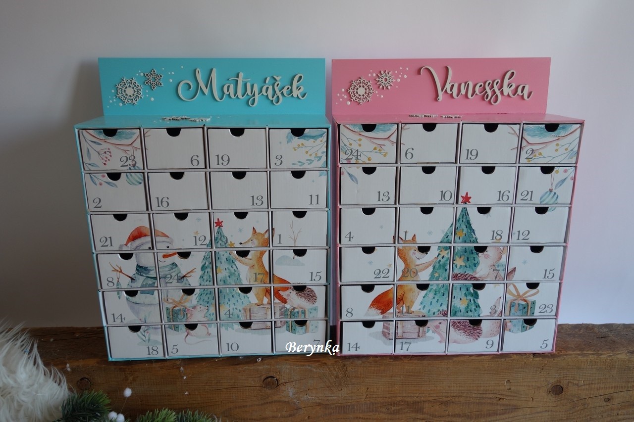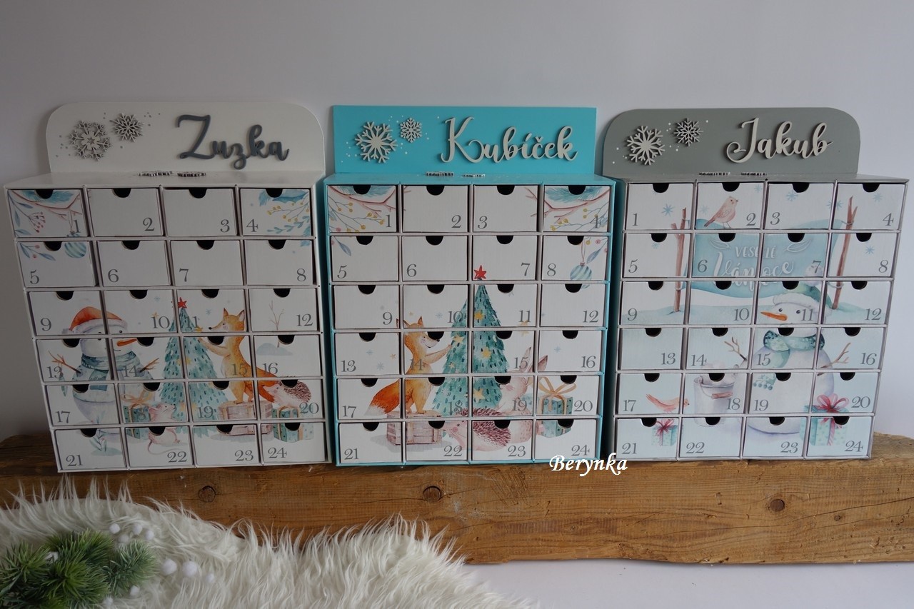 Adventní kalendář s vyřezaným jménem a lesními zvířátky *3 motivy*