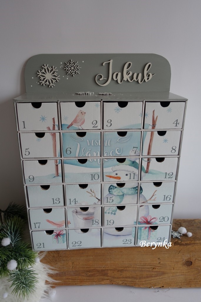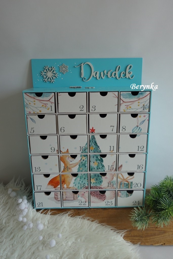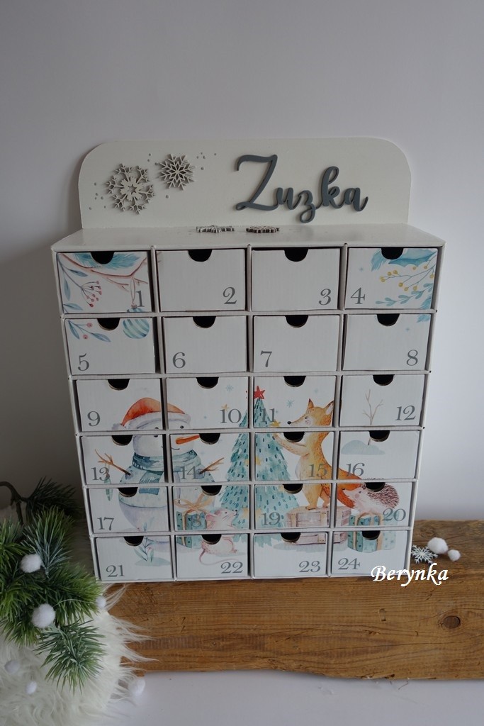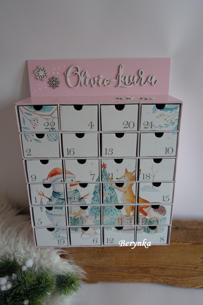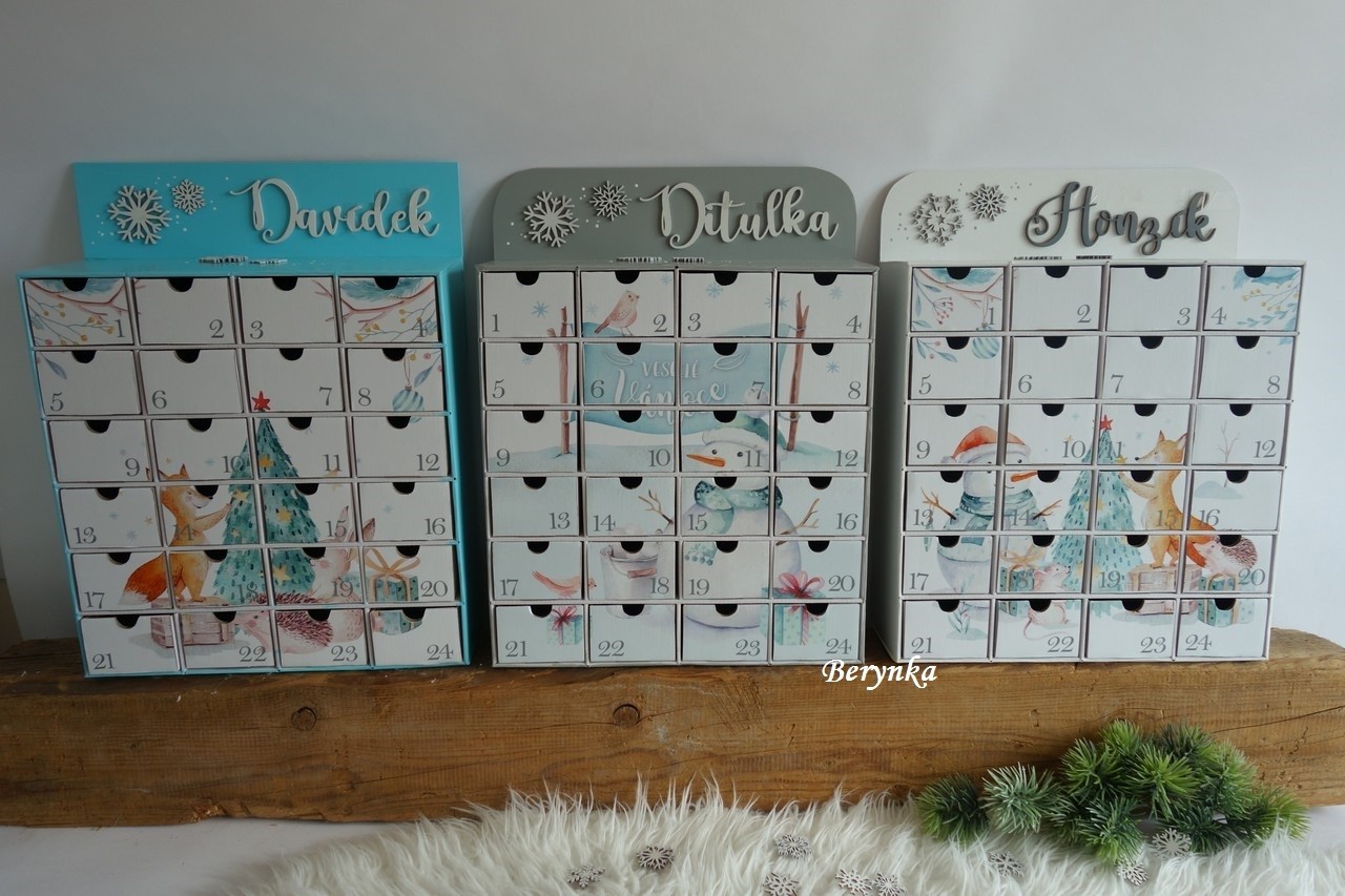 Adventní kalendář s vyřezaným jménem a lesními zvířátky *3 motivy*
