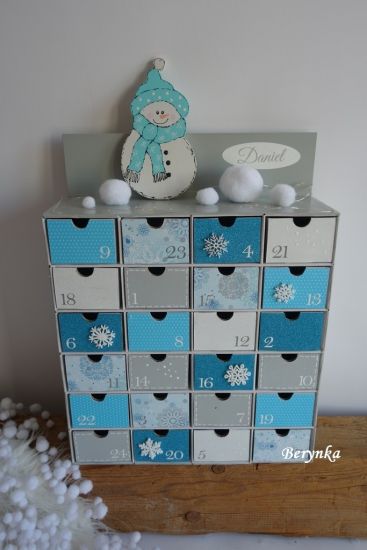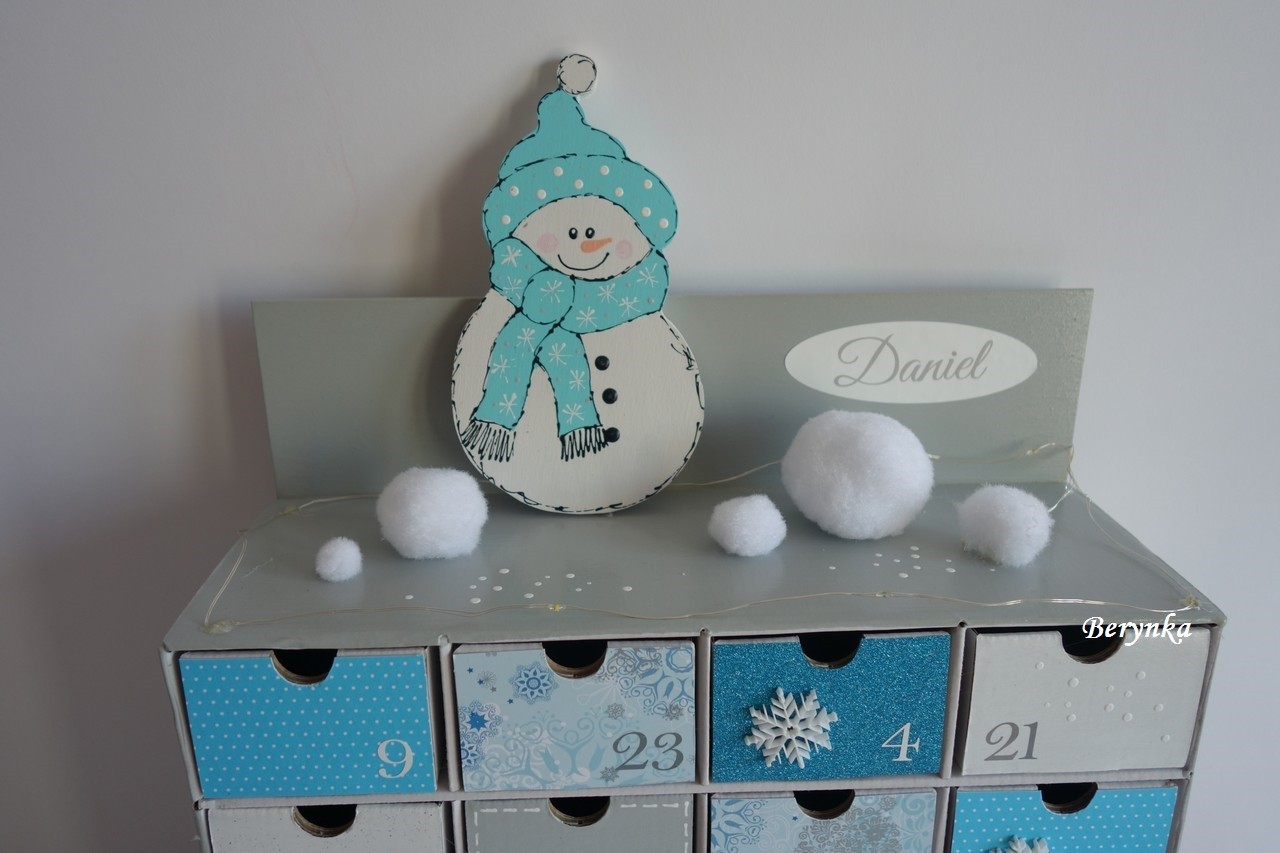 Adventní kalendář šedo-tyrkysový se sněhulákem