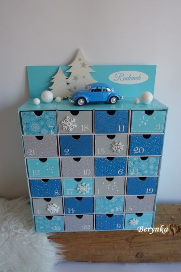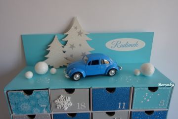 Adventní kalendář tyrkysový s autíčkem