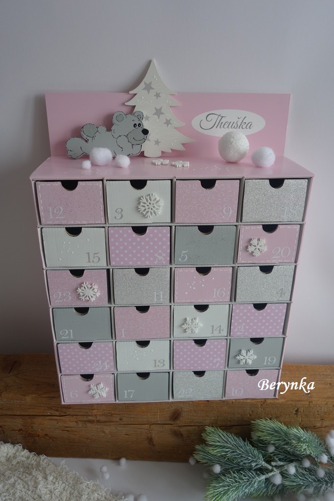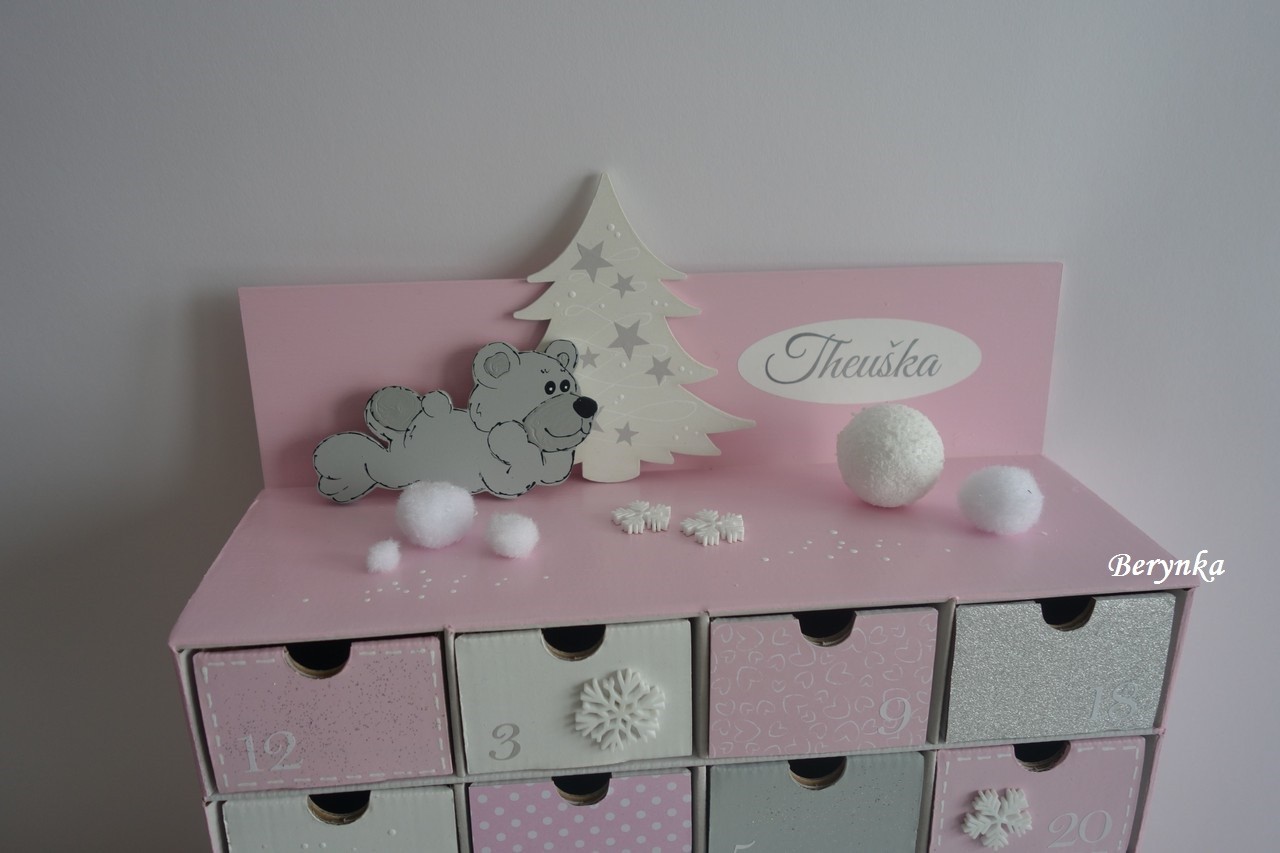 Adventní kalendář pudrově růžový s medvídkem