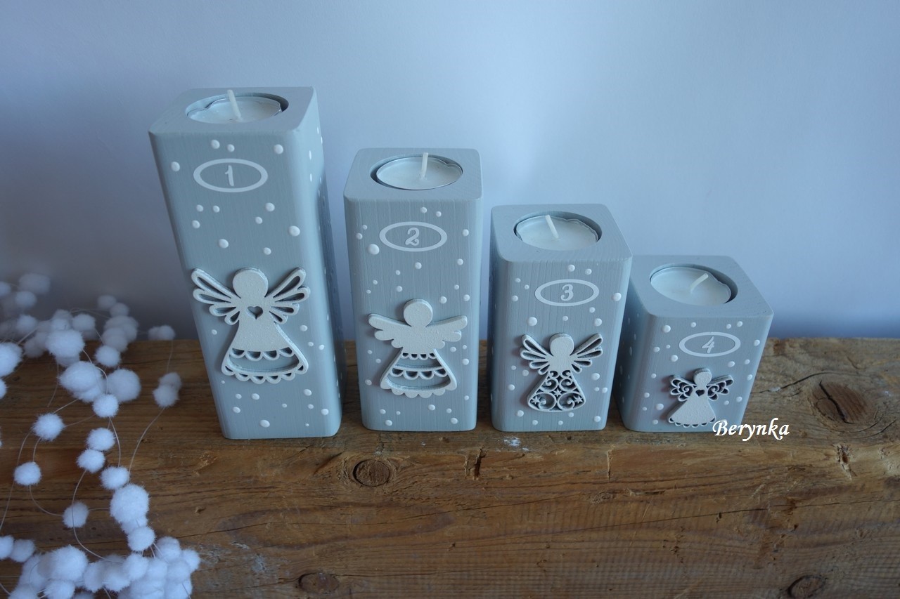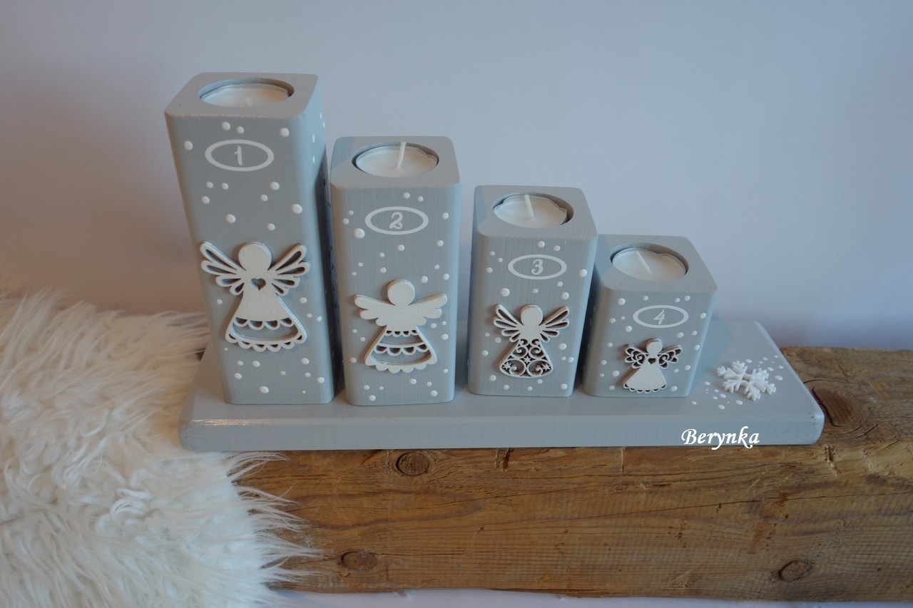 - andělíčci jsou samostatně vyřezaní ze dřeva a na svícnu přilepení
