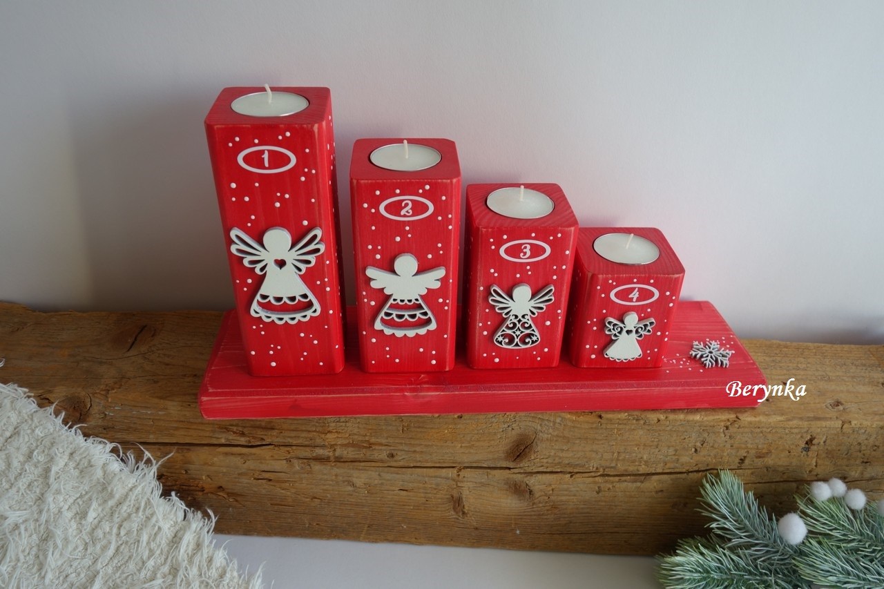 Adventní svícen stupňovitý s andělíčky - různé barvy