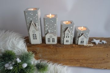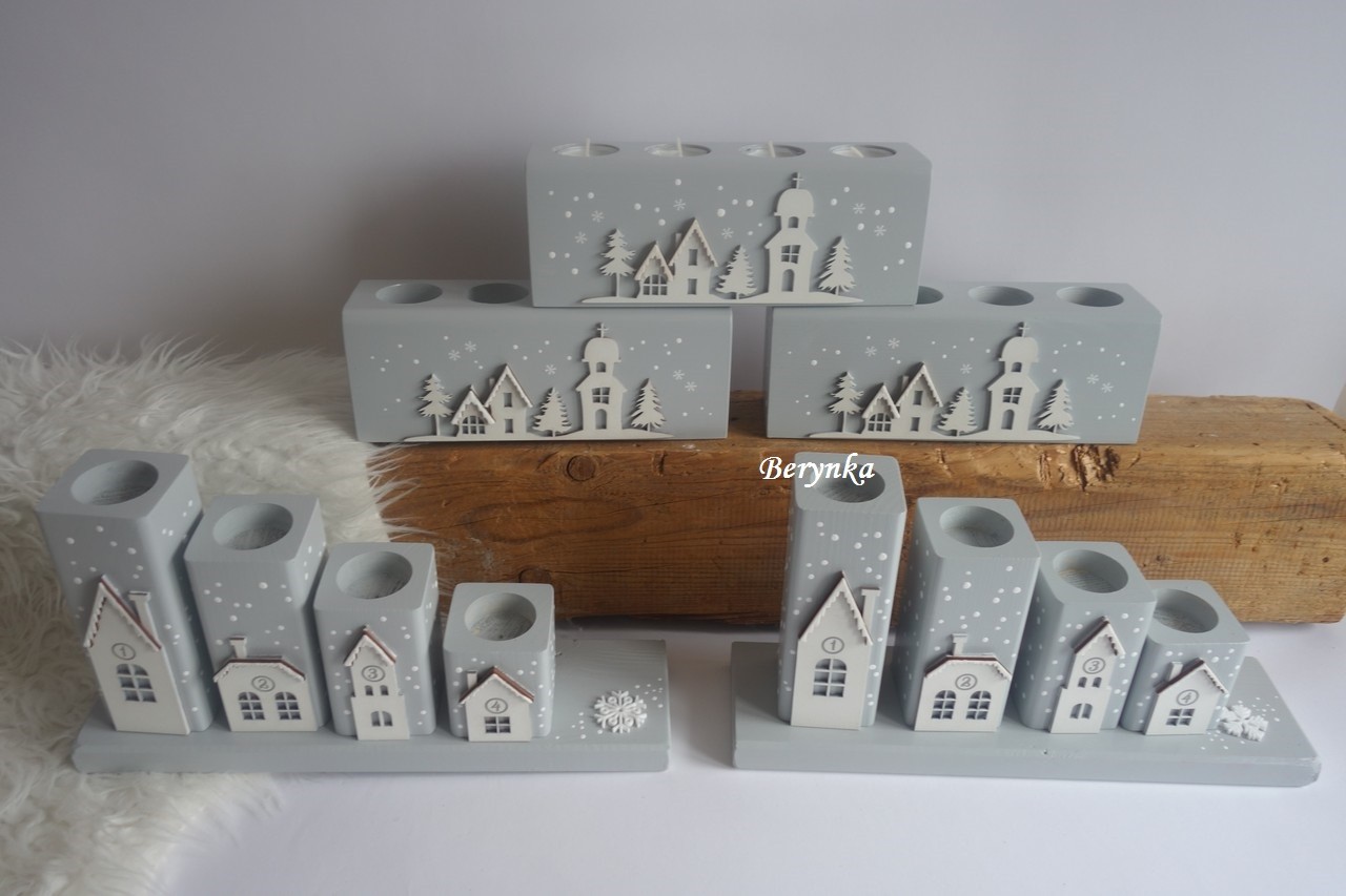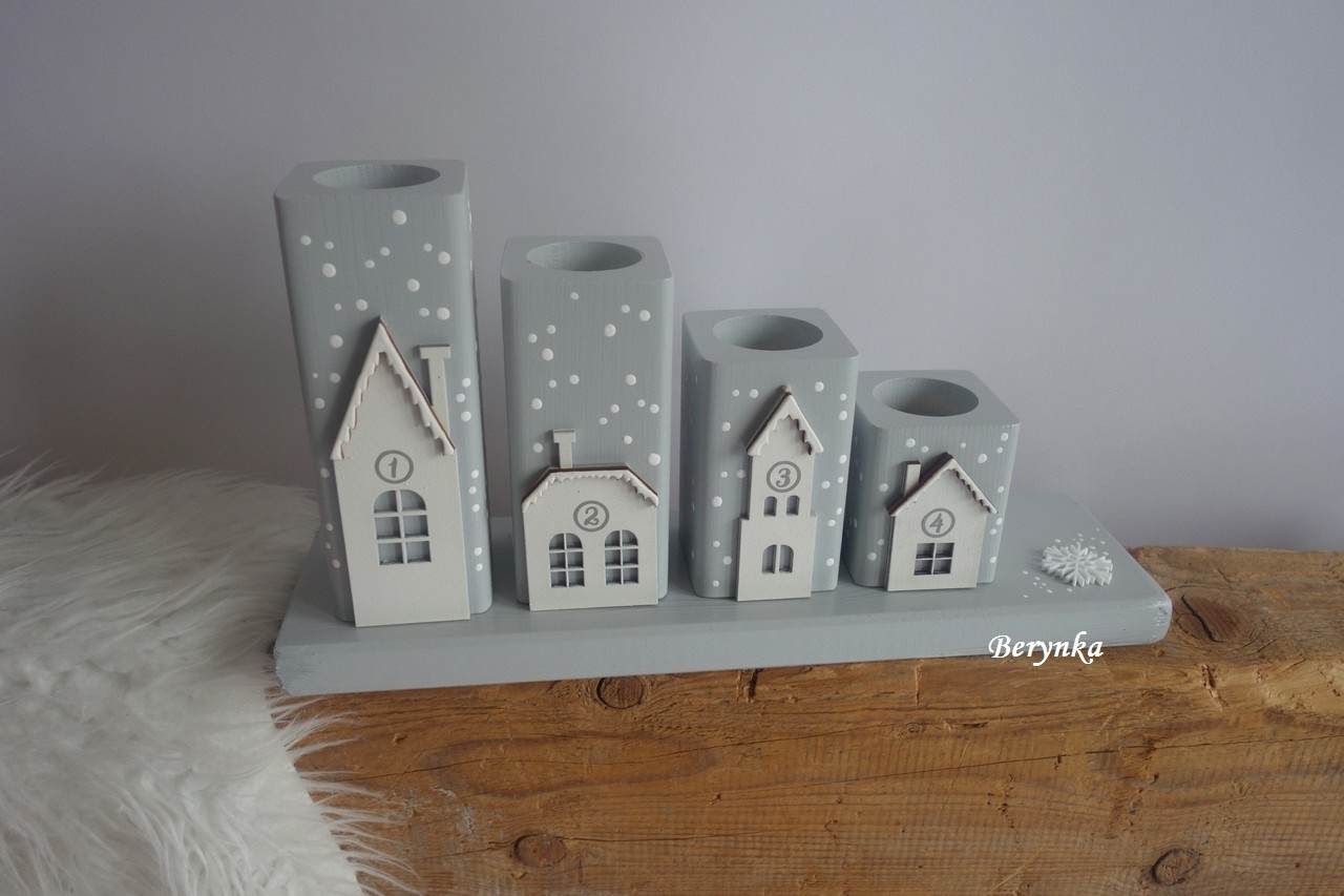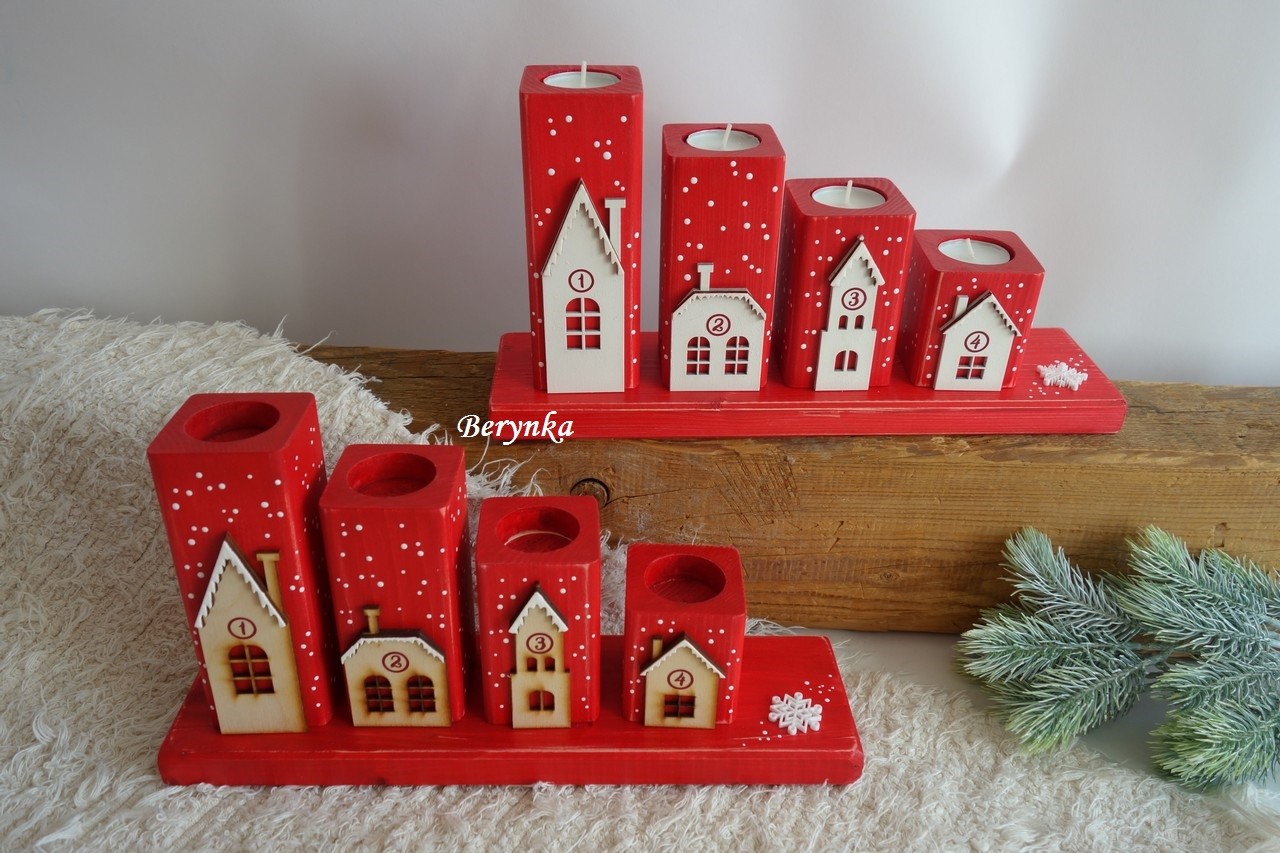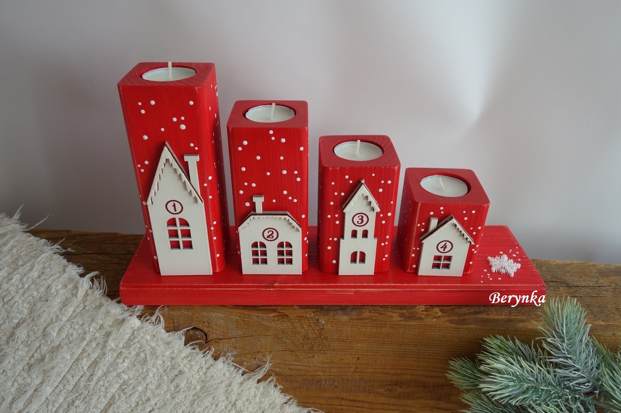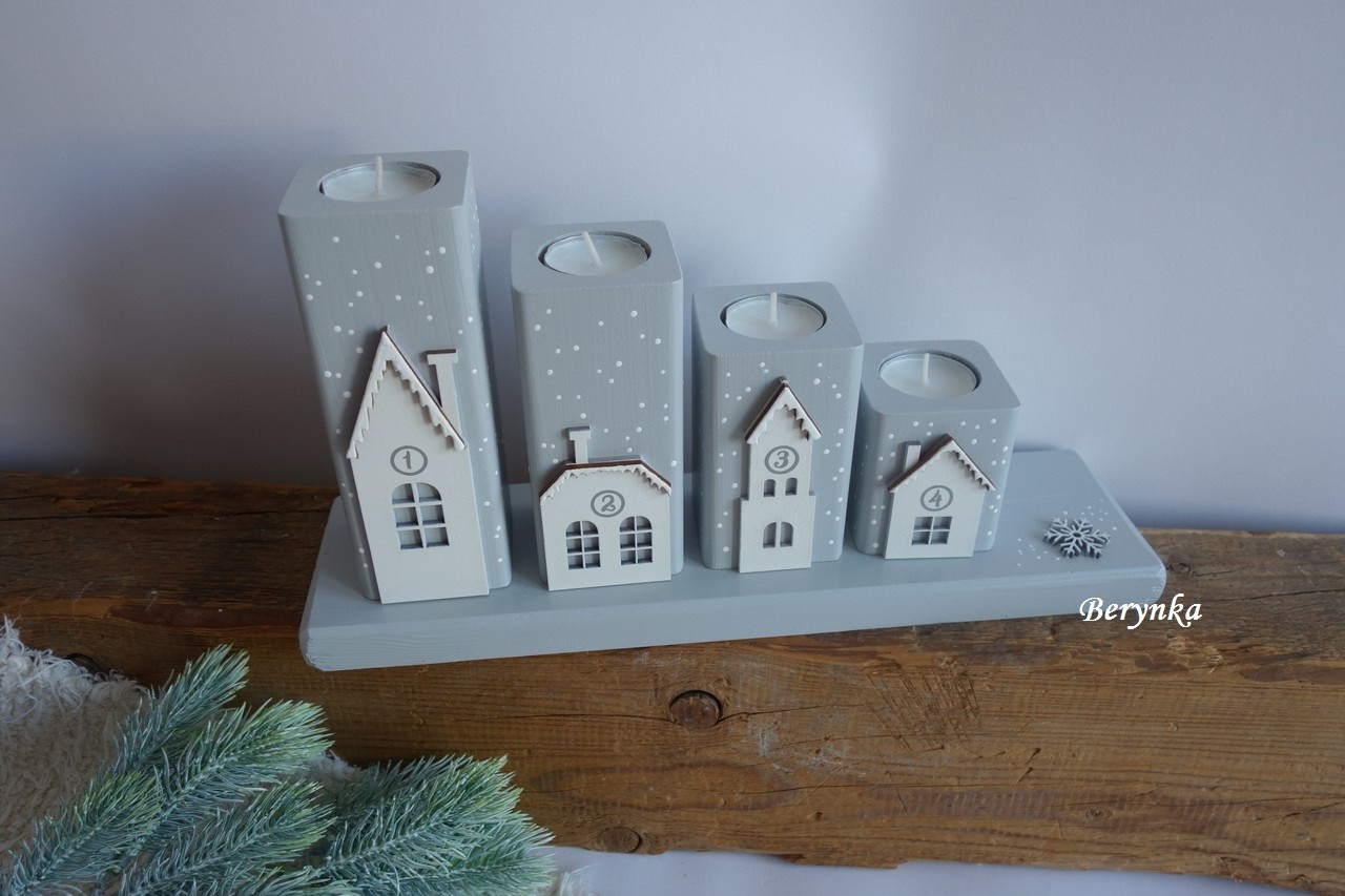 - domečky jsou samostatně vyřezané ze dřeva a na svícnu přilepené