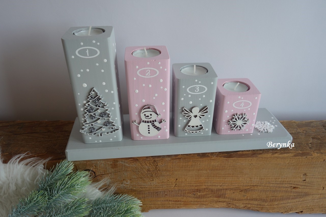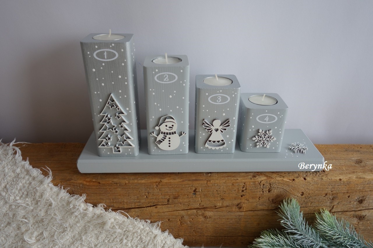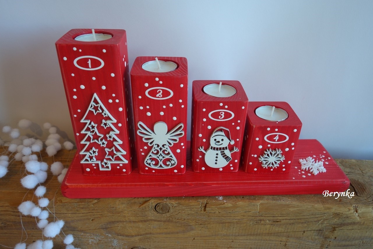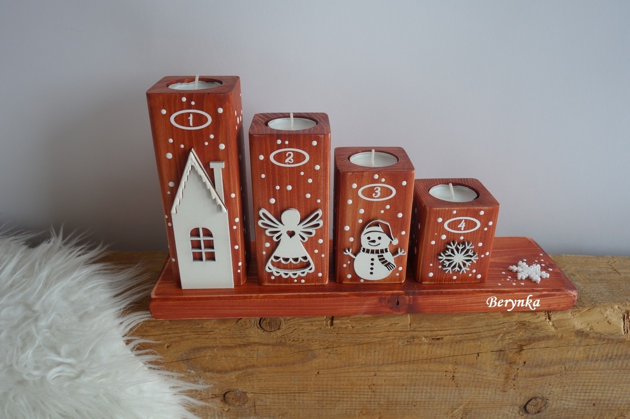 - obrázky jsou samostatně vyřezané ze dřeva a na svícnu přilepené
