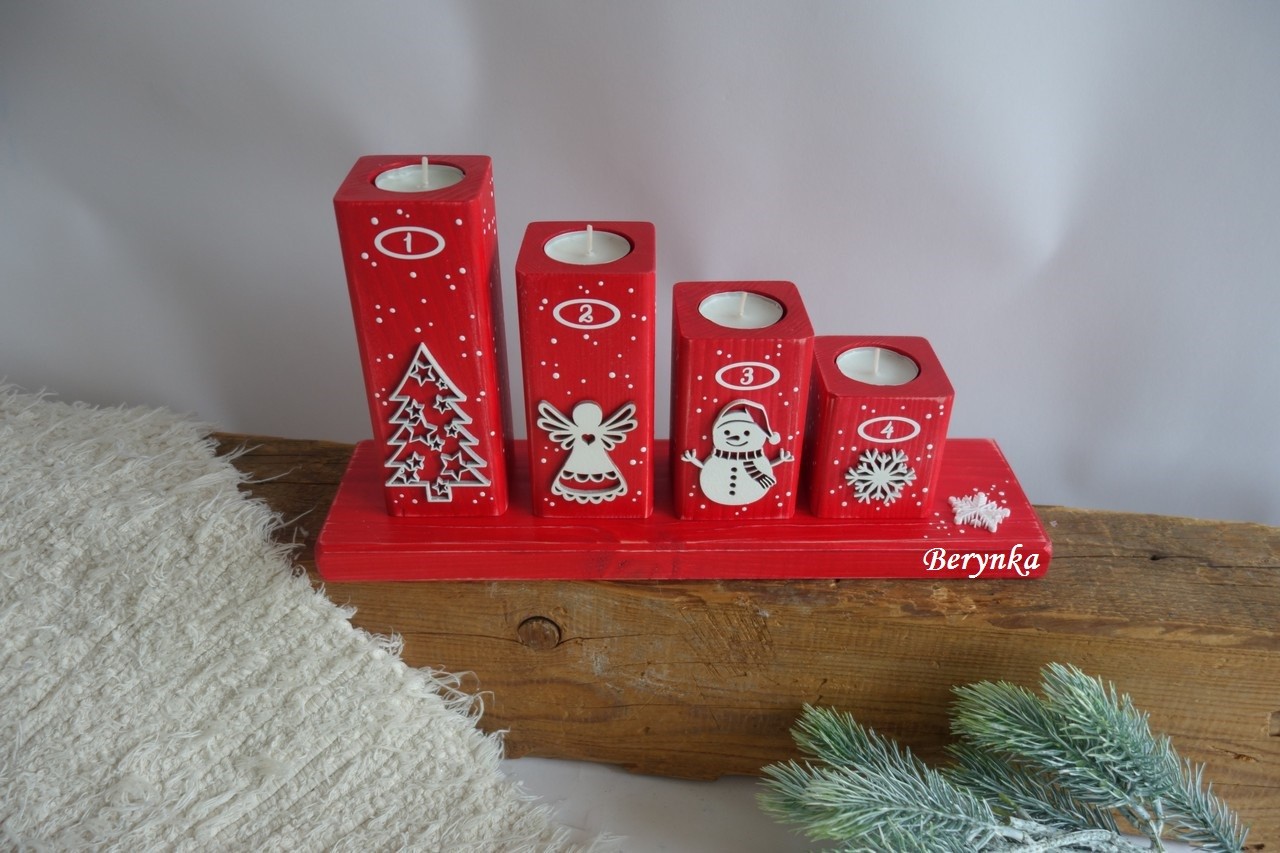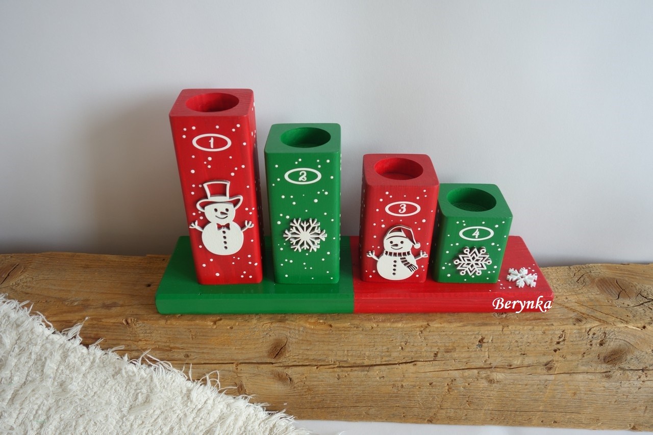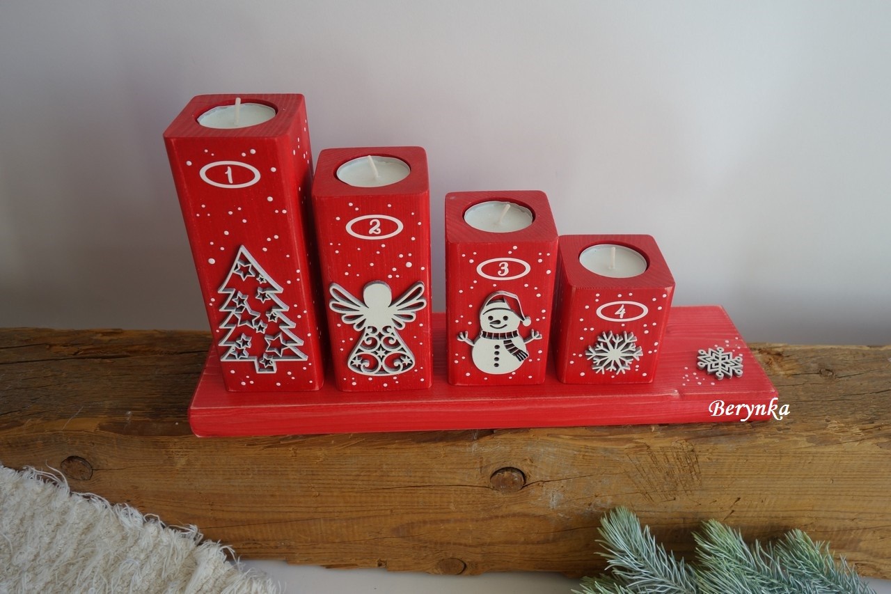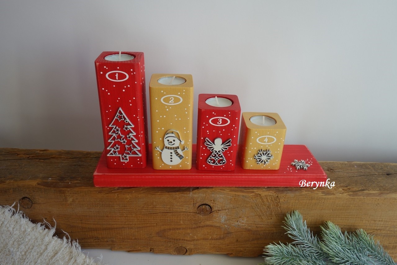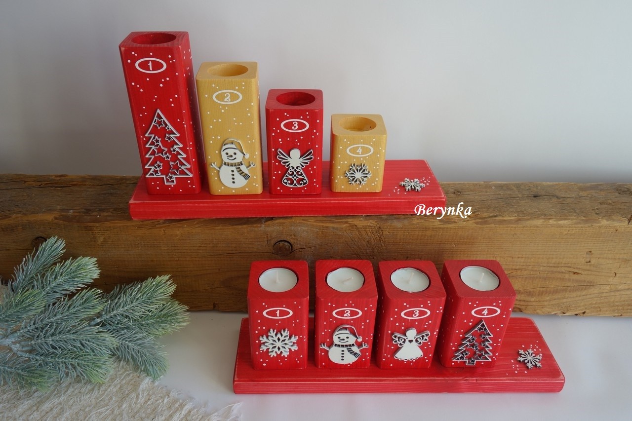 Adventní svícen stupňovitý s kombinovanými motivy - různé barvy