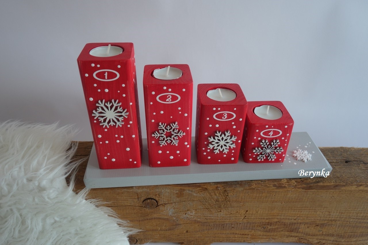 Adventní svícen stupňovitý s vločkami - různé barvy
