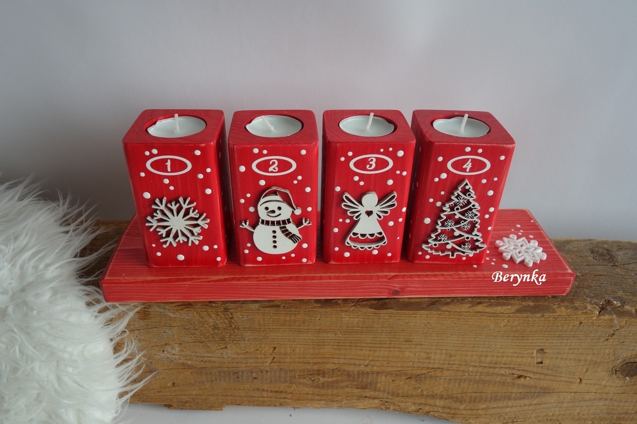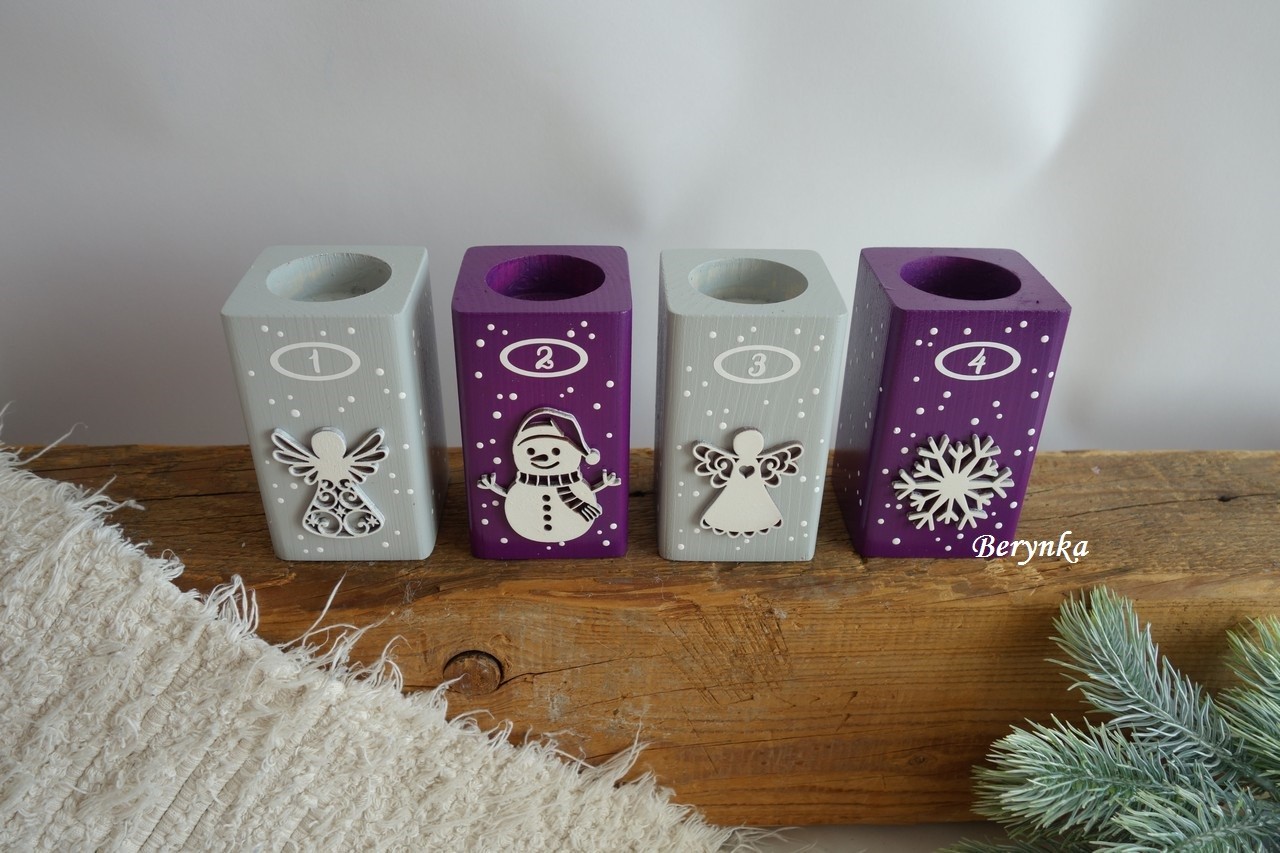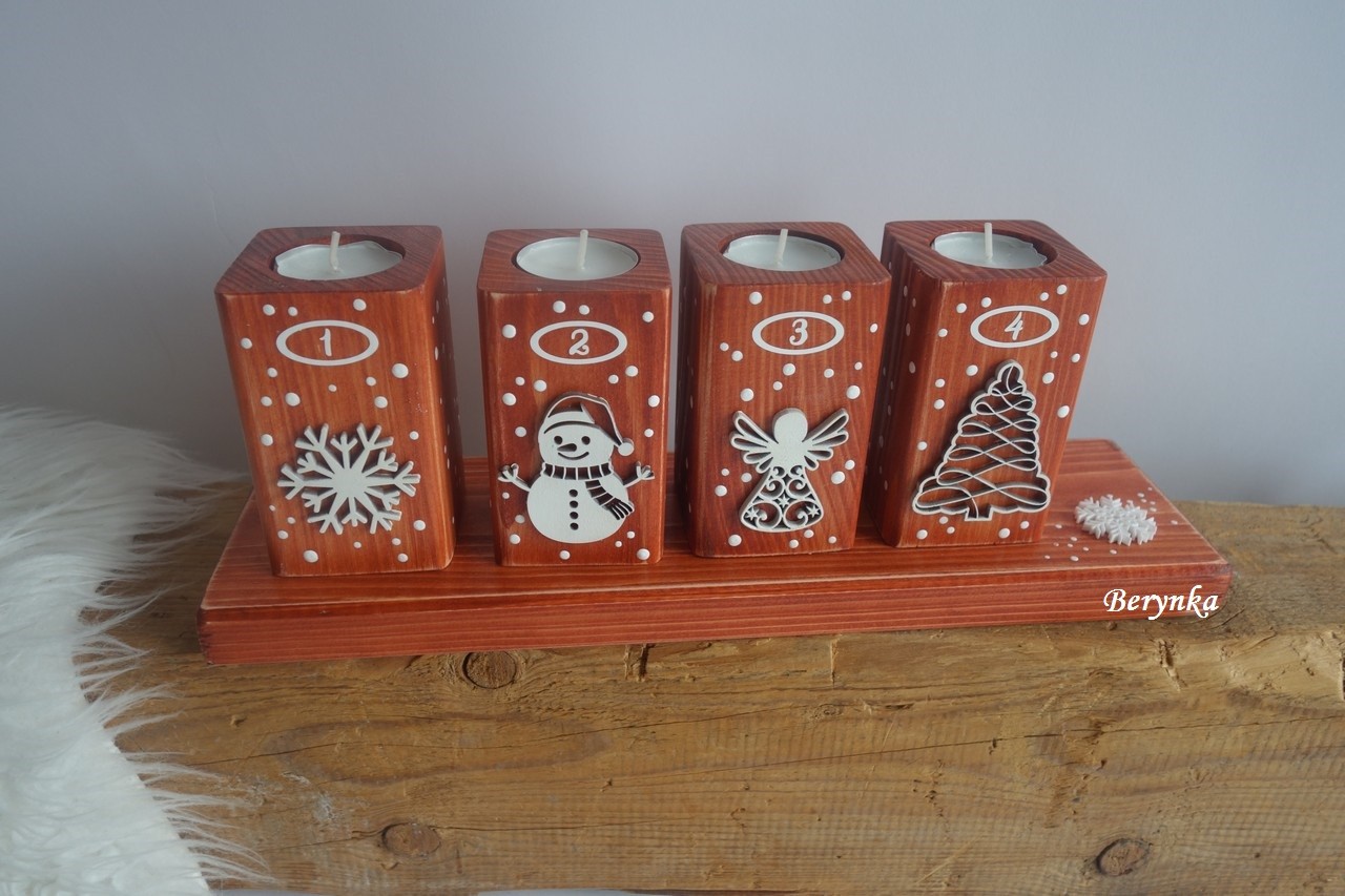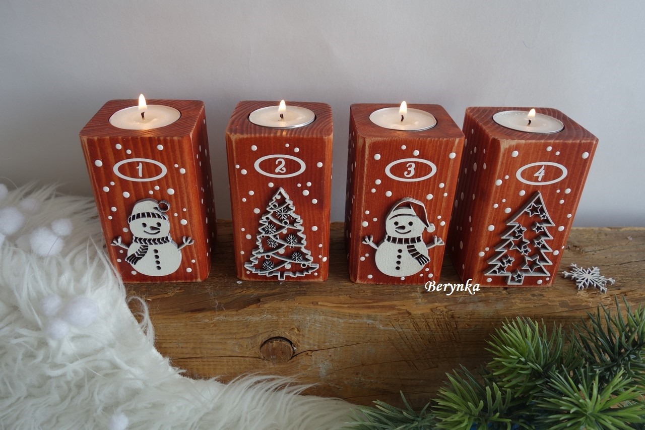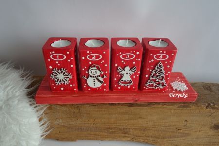 - obrázky jsou samostatně vyřezané ze dřeva a na svícnu přilepené