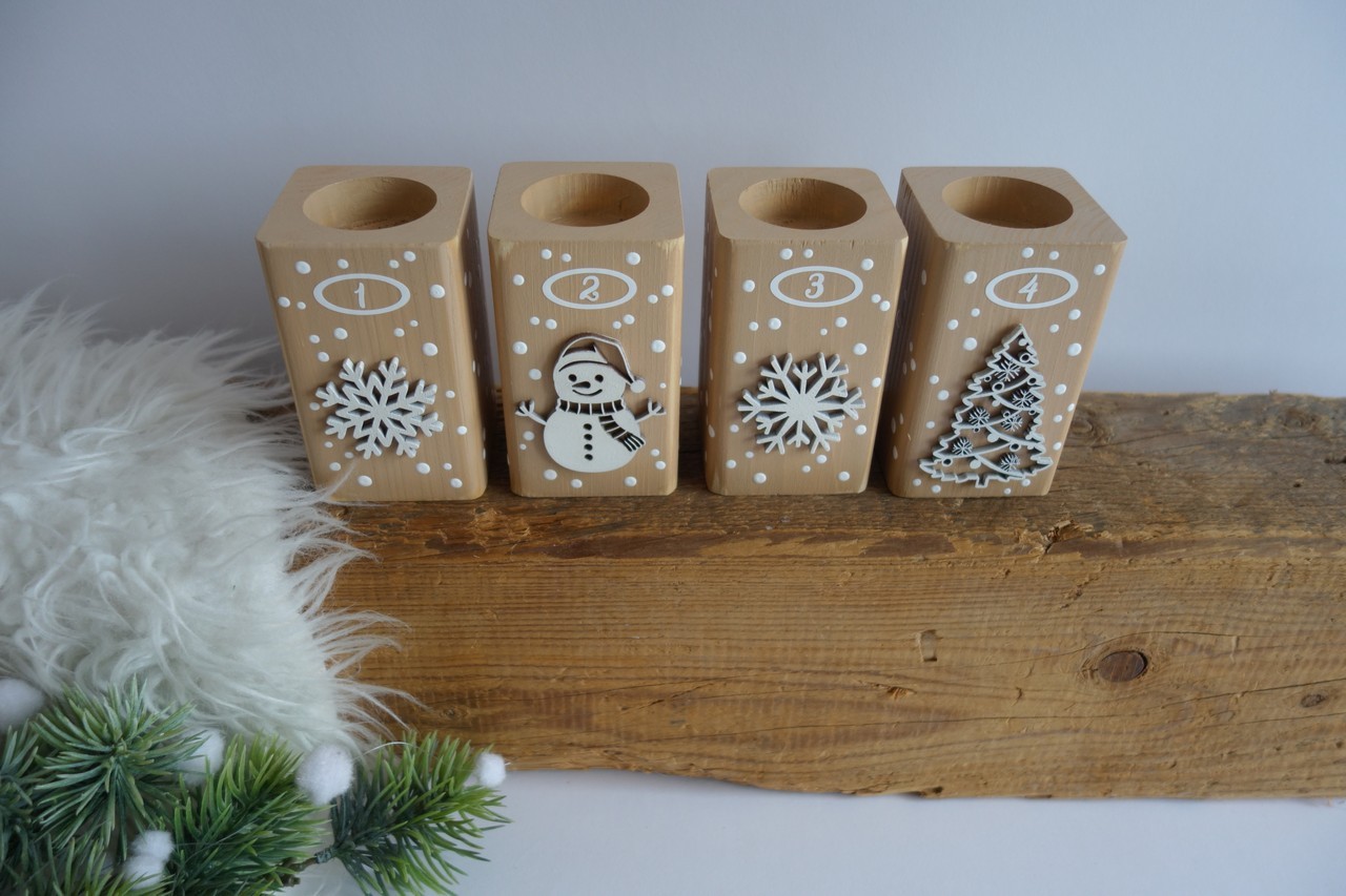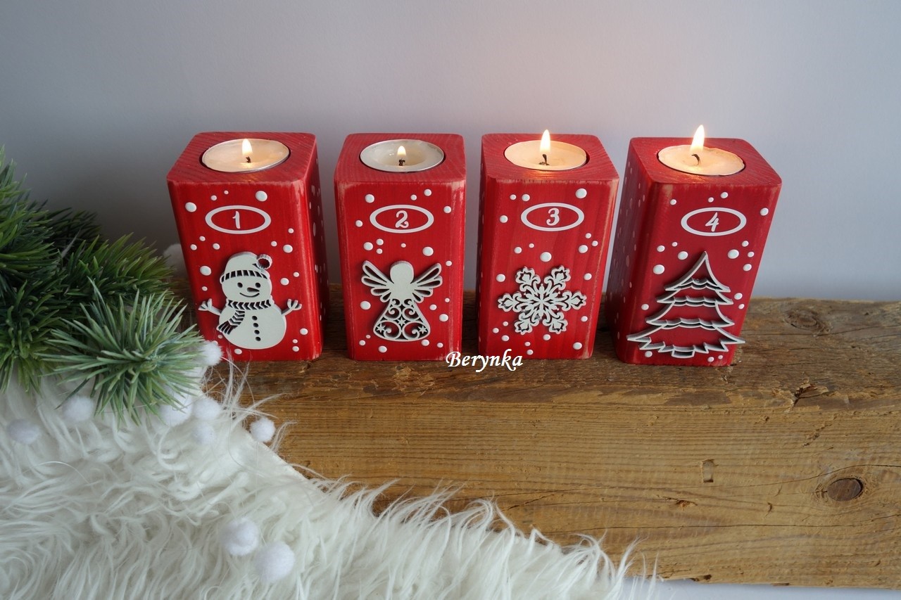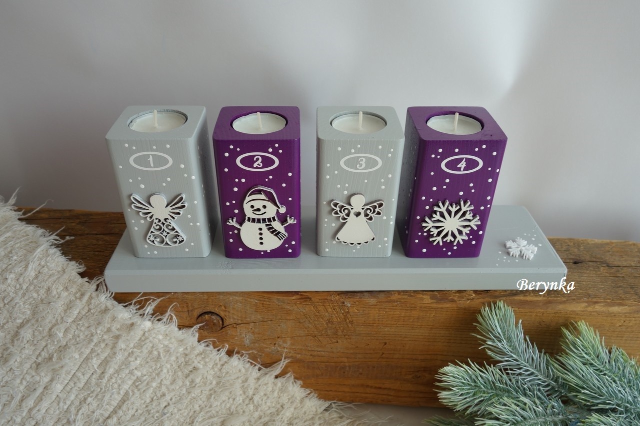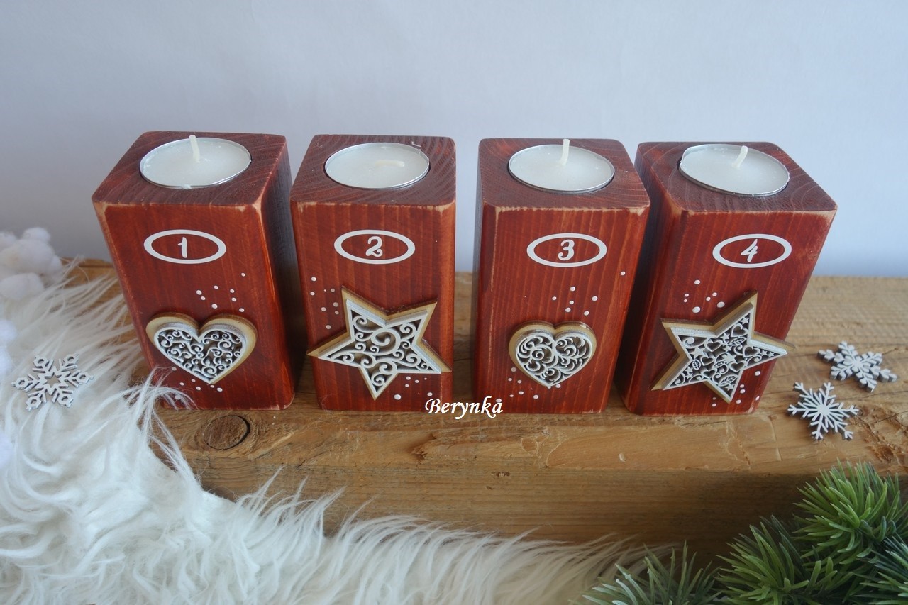 - obrázky jsou samostatně vyřezané ze dřeva a na svícnu přilepené
