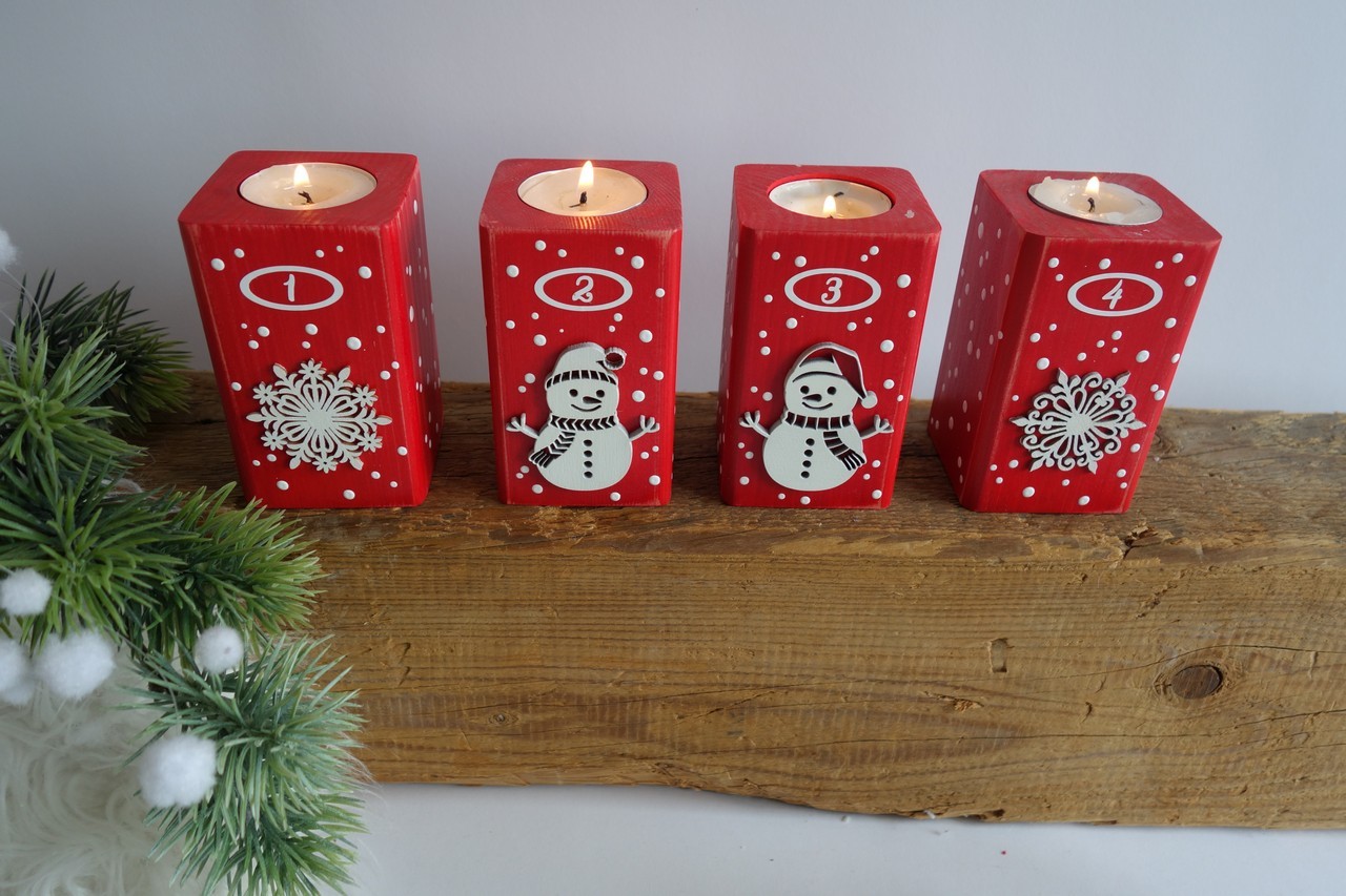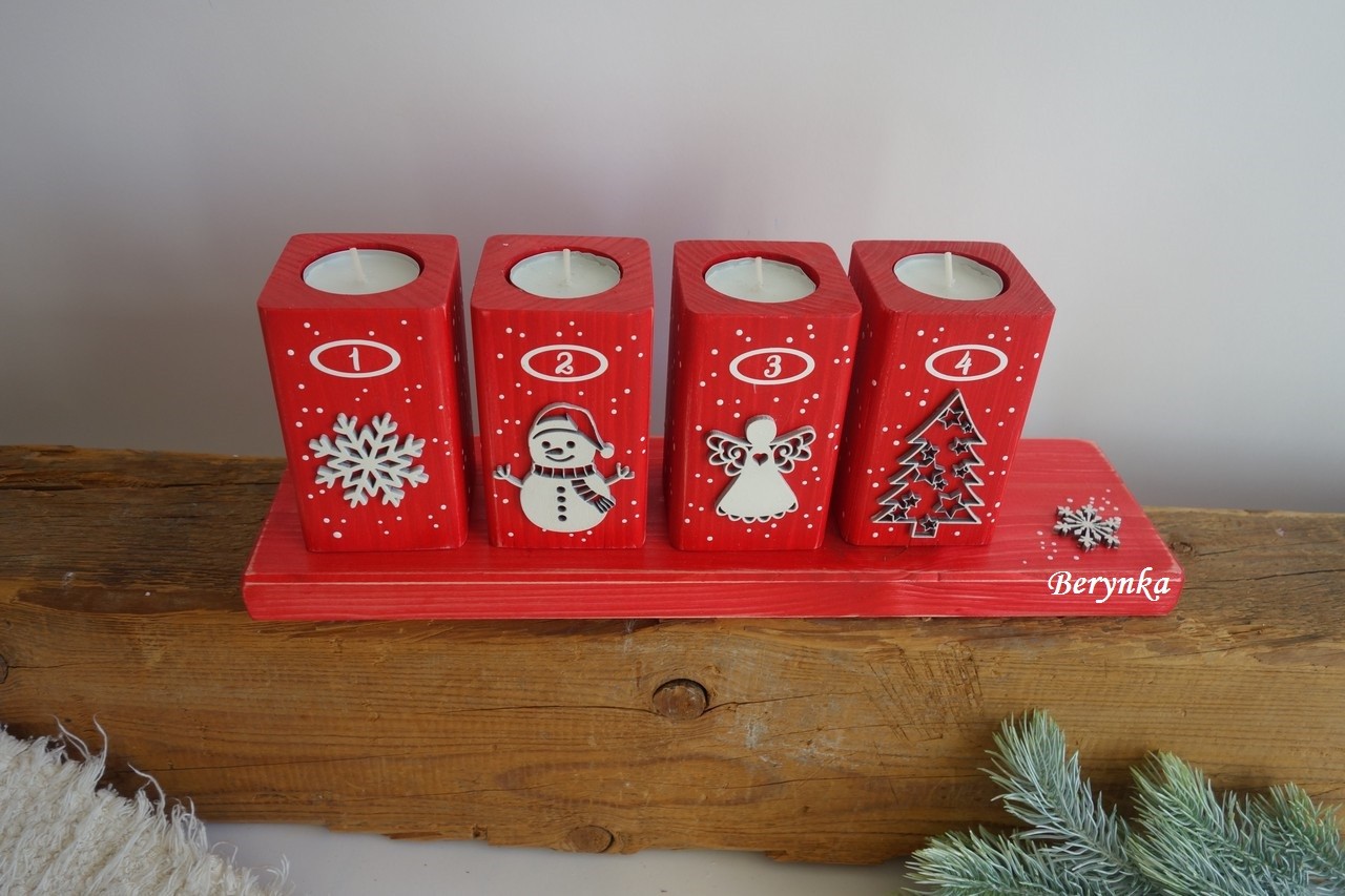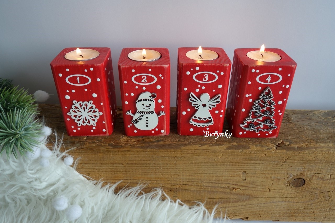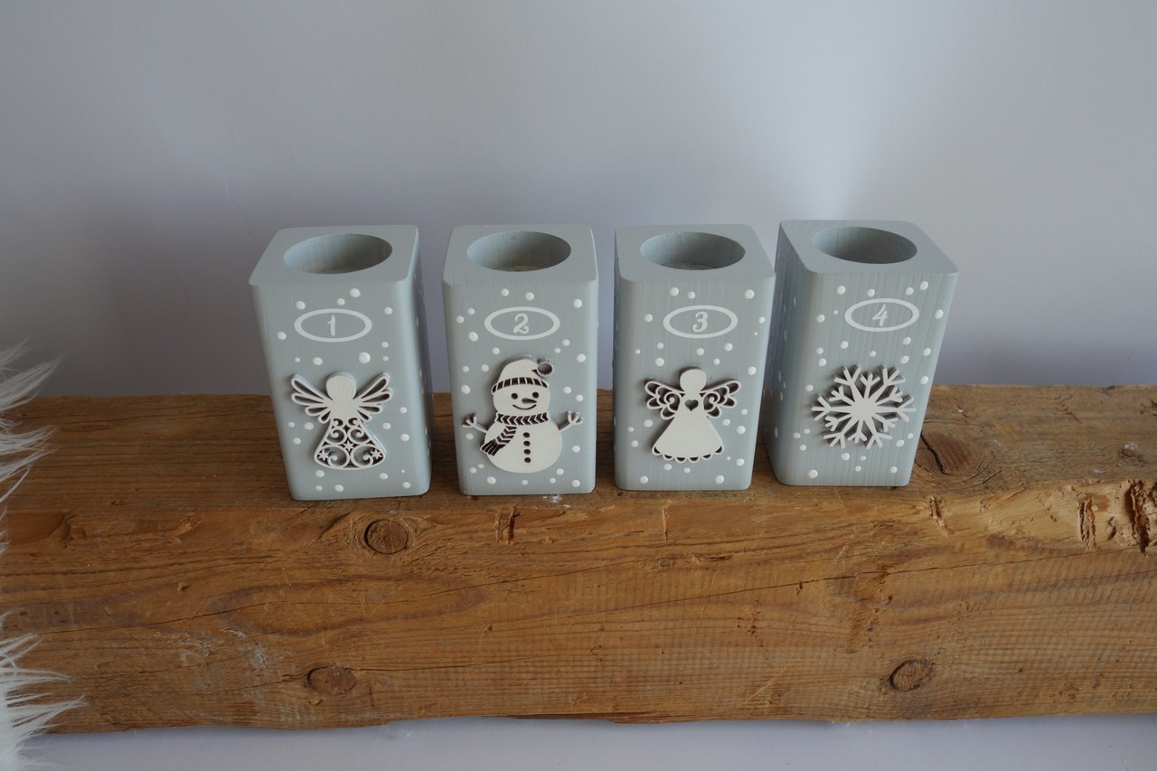 - obrázky jsou samostatně vyřezané ze dřeva a na svícnu přilepené