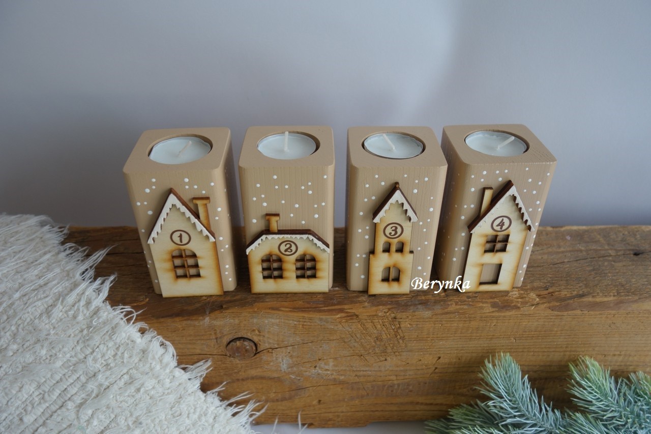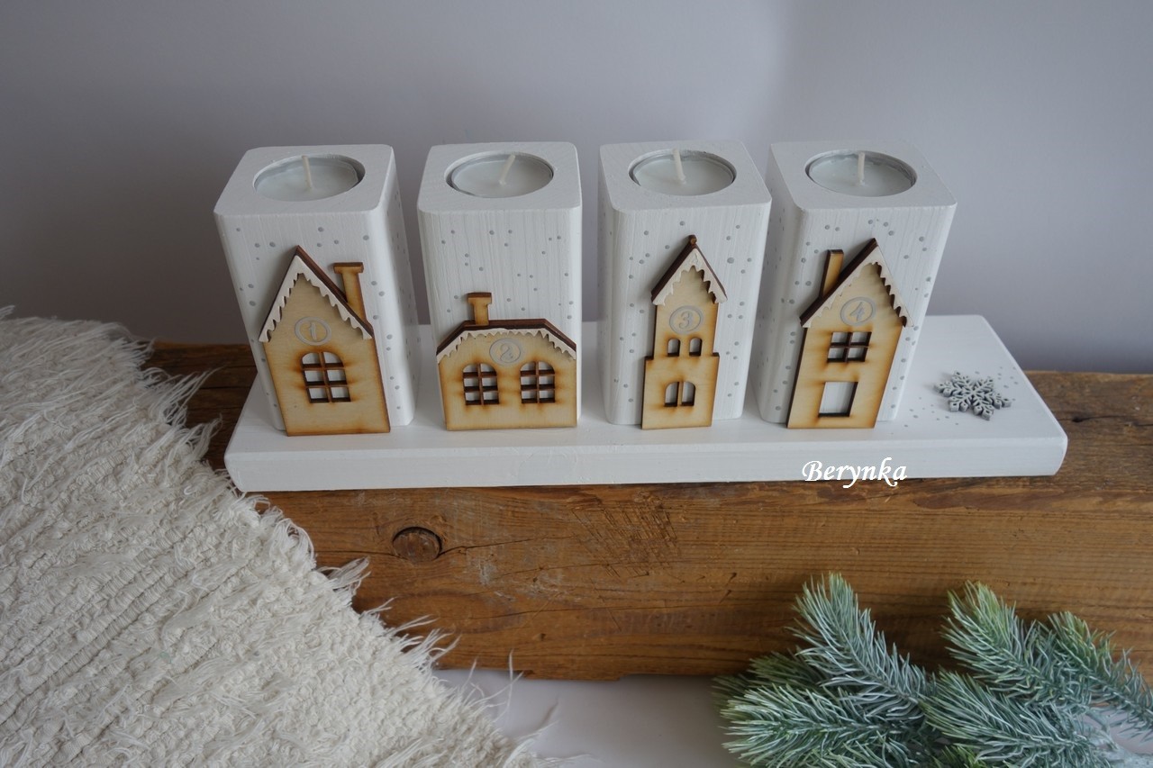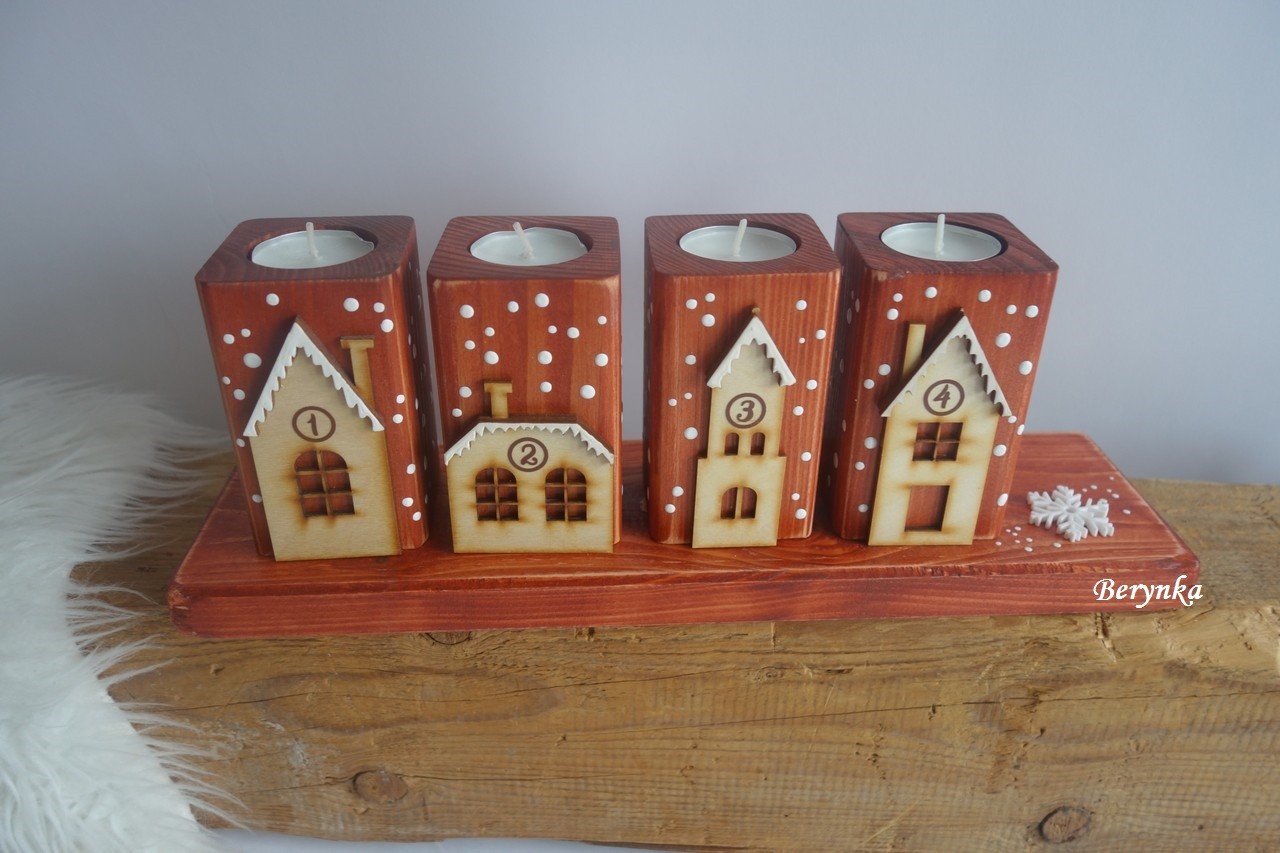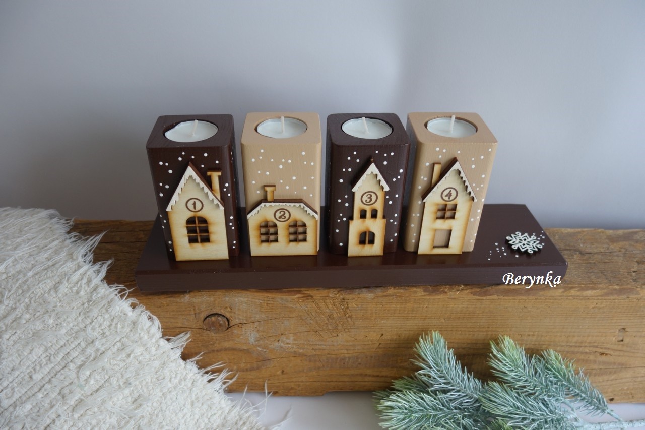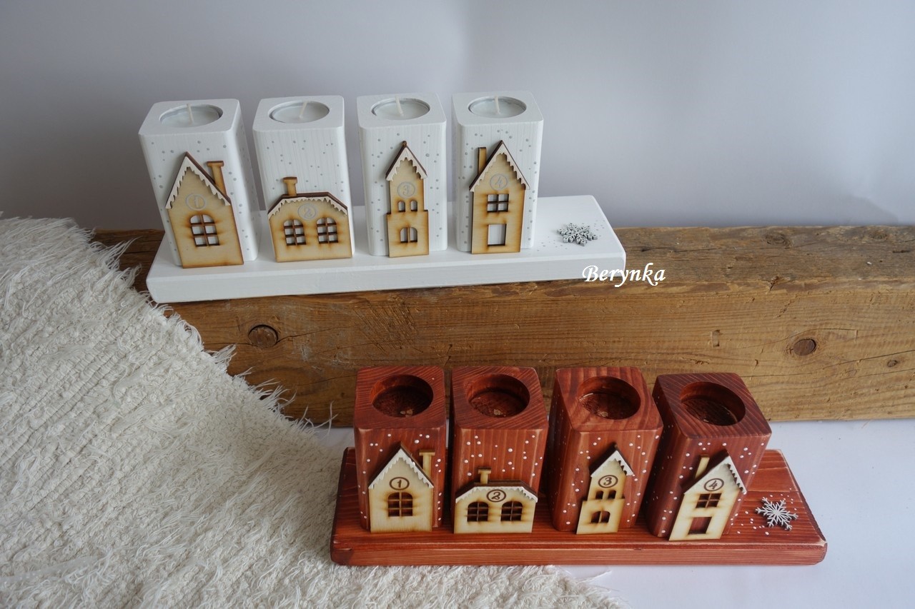 - domečky jsou samostatně vyřezané ze dřeva a na svícnu přilepené