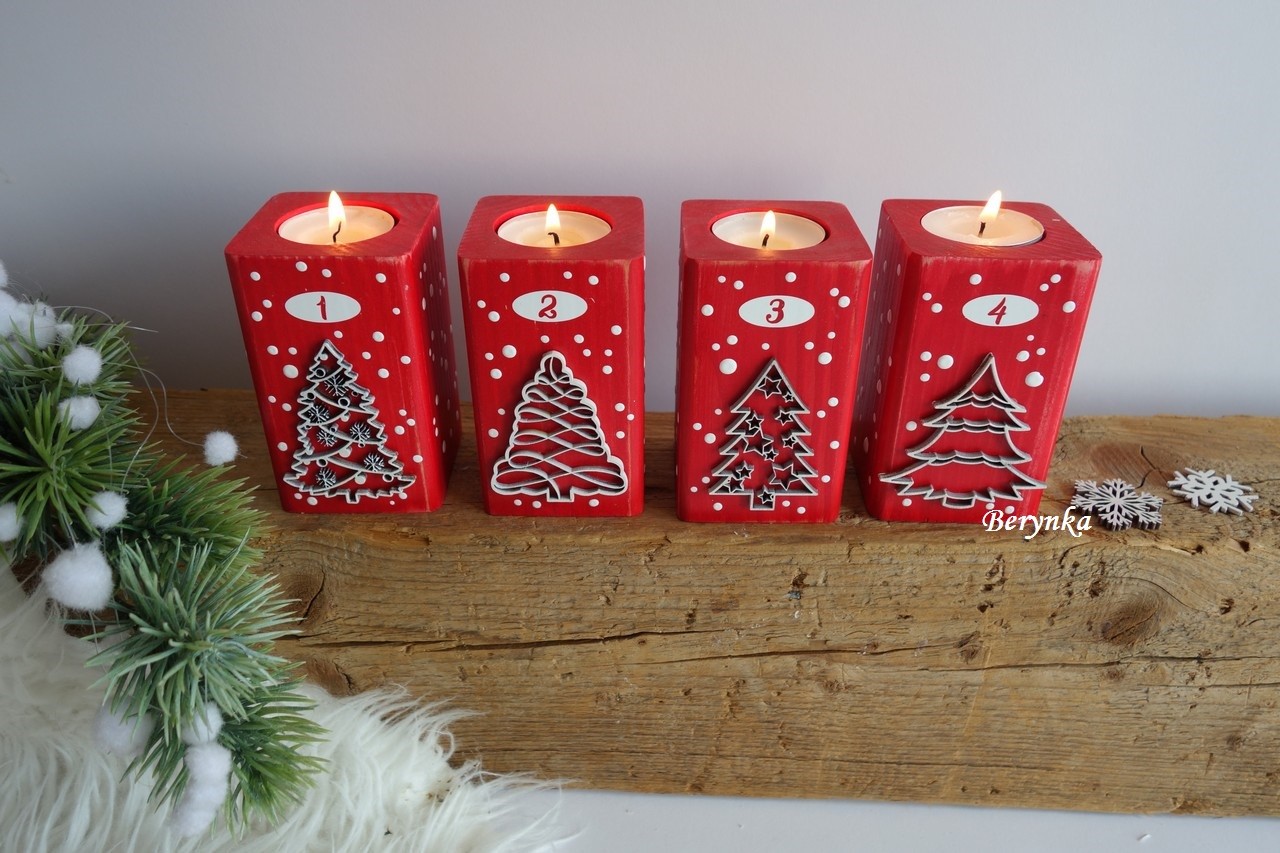 - stromečky jsou samostatně vyřezané ze dřeva a na svícnu přilepené
