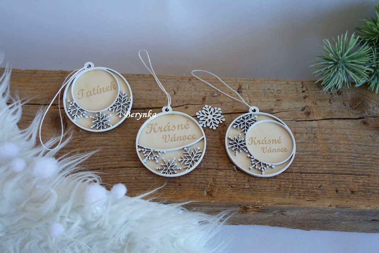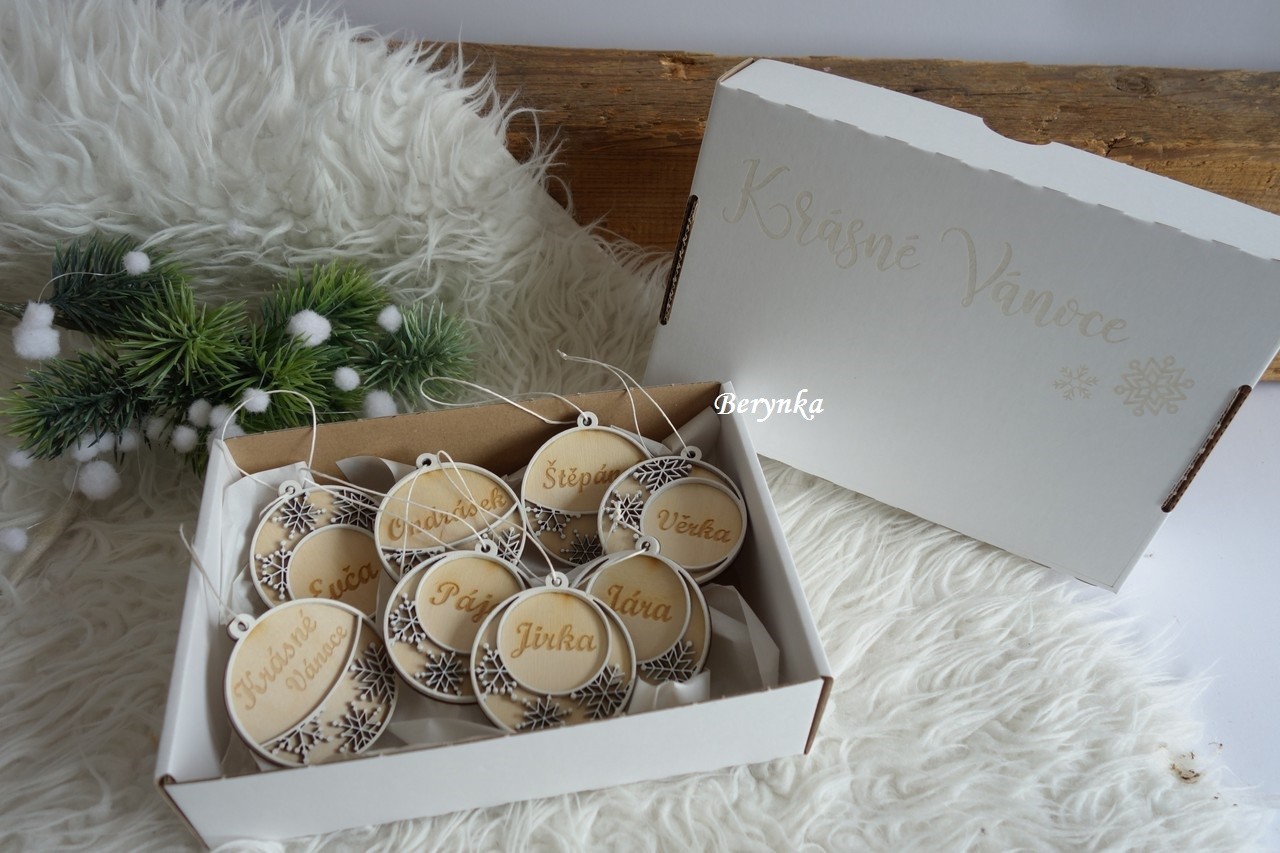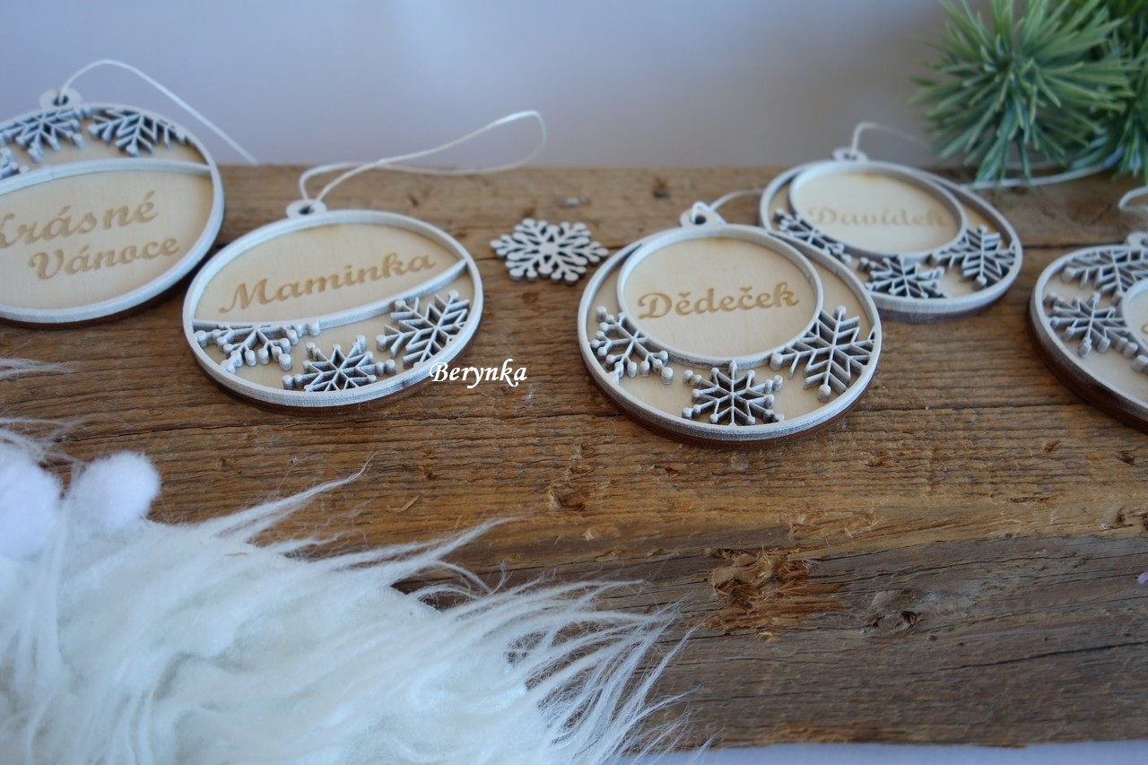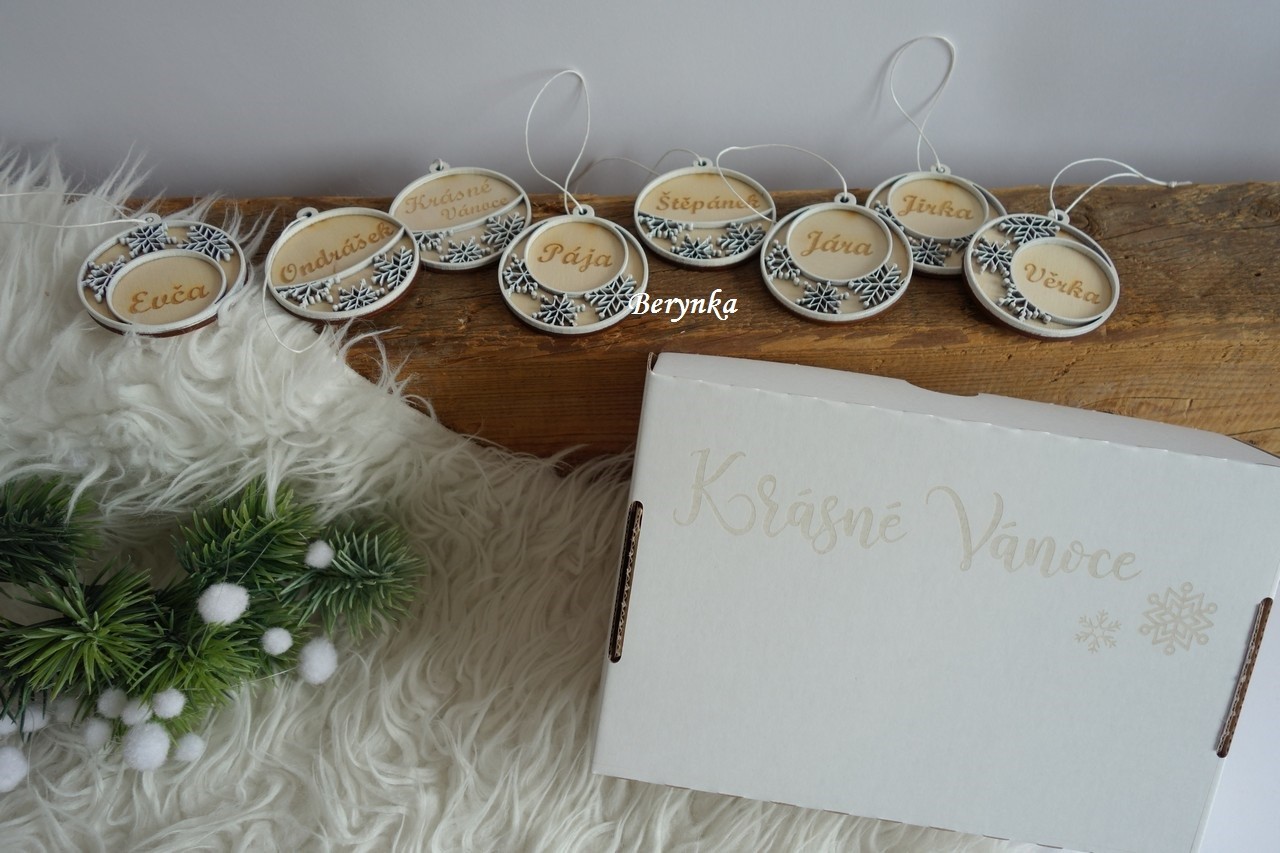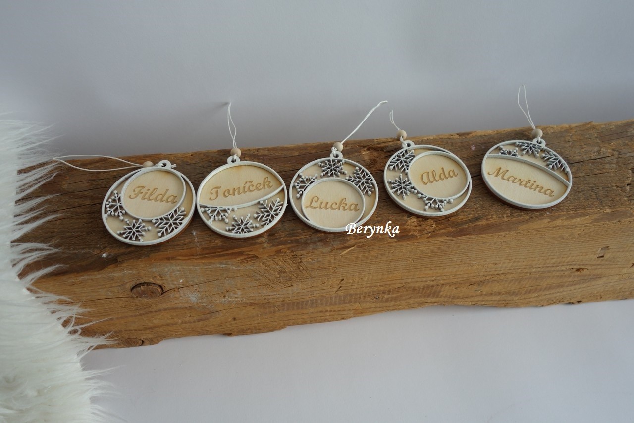 - dřevěné vánoční ozdoby/baňky se jmény na přání