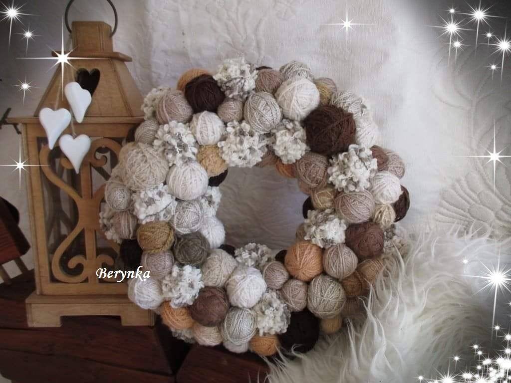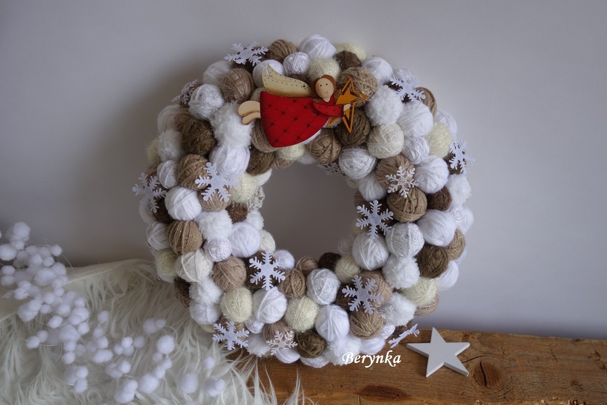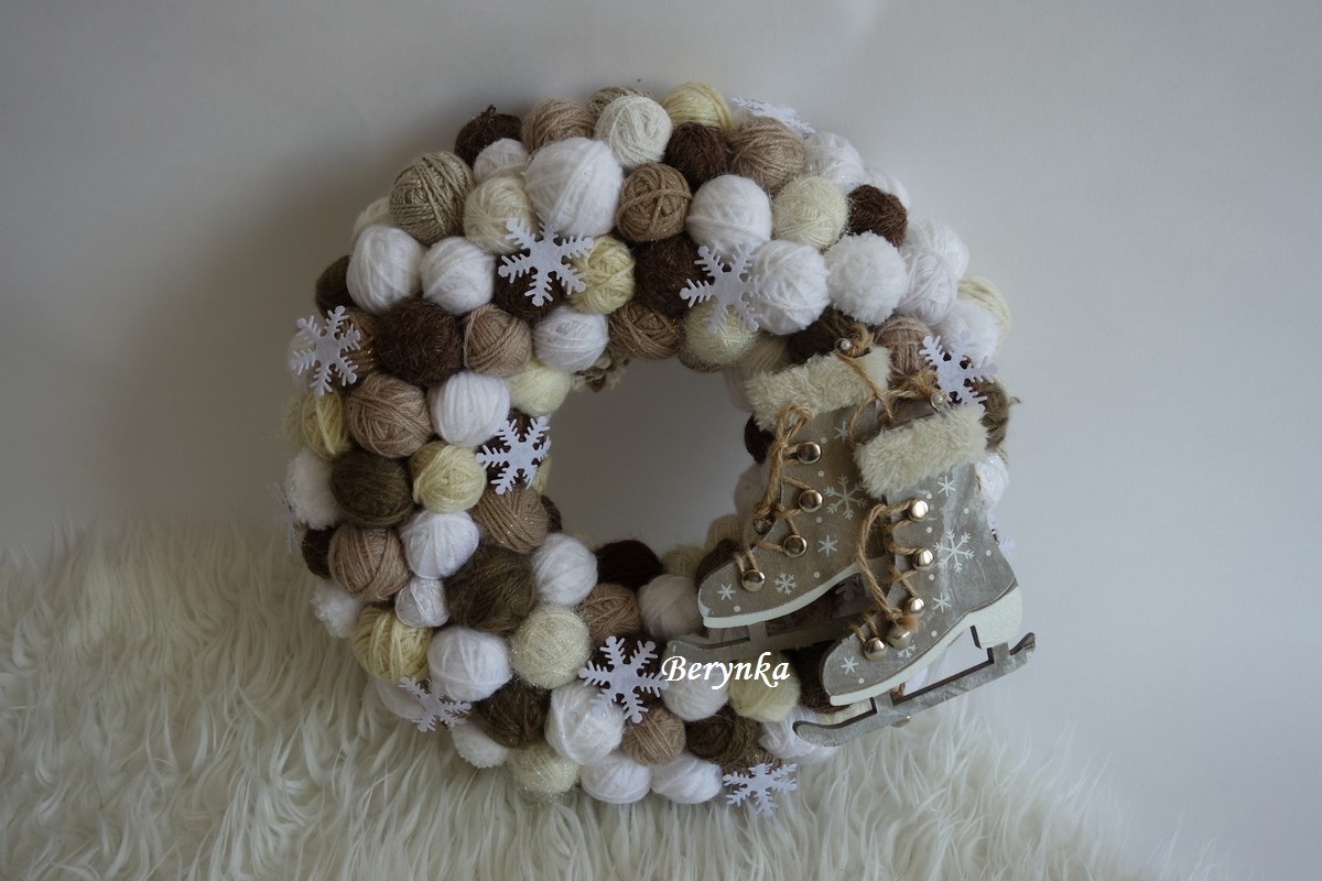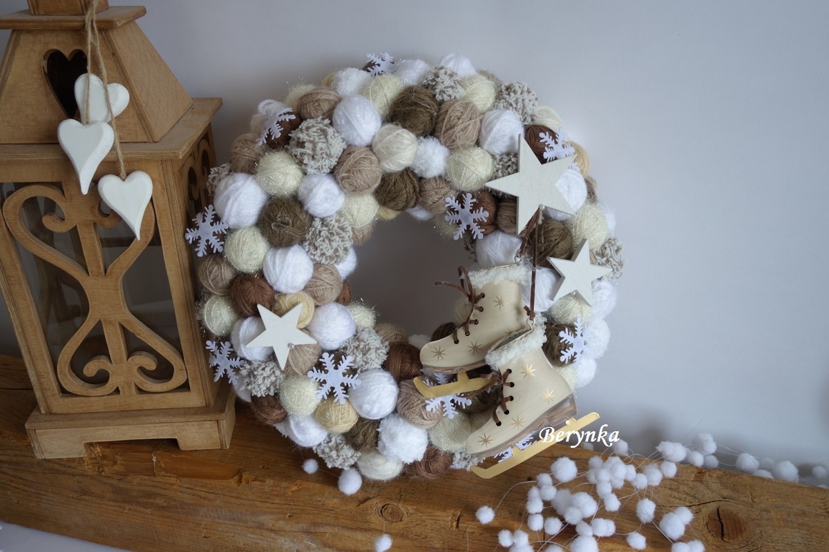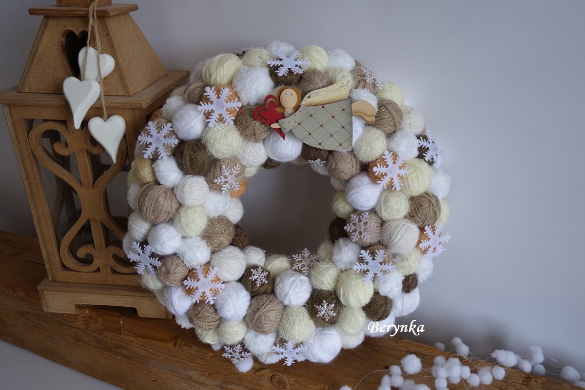 - je z různě velkých klubíček z vlny, ozdobený vločkami