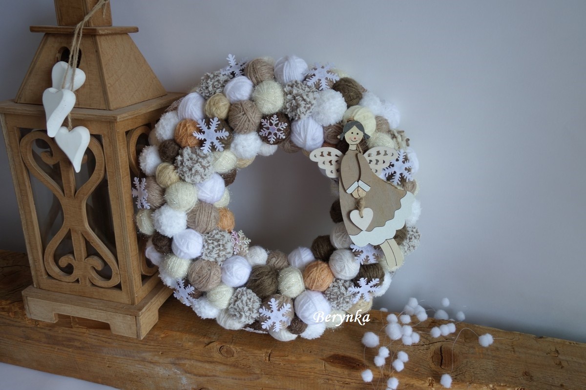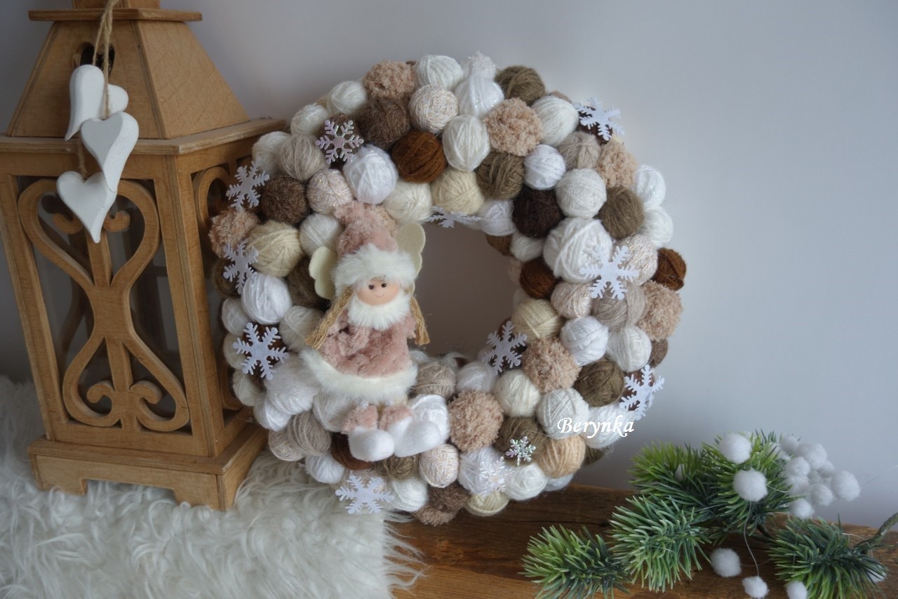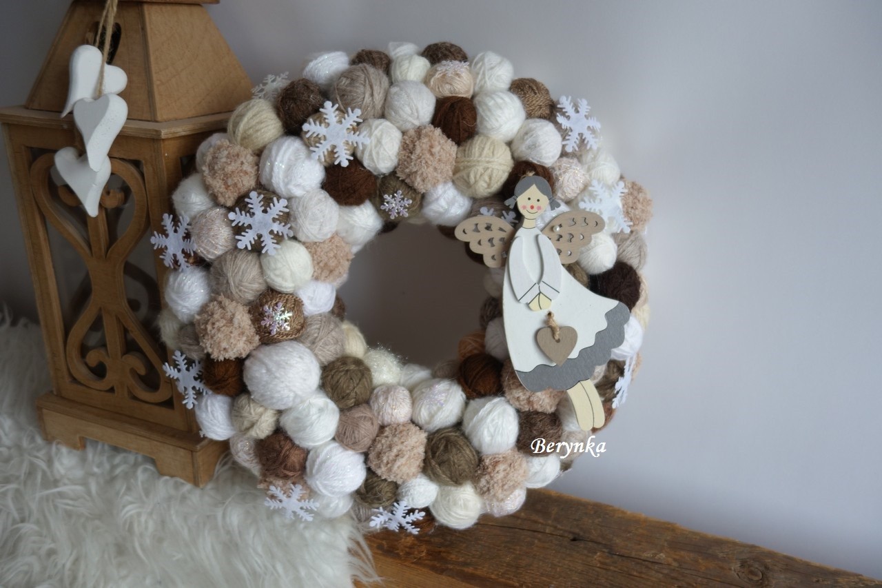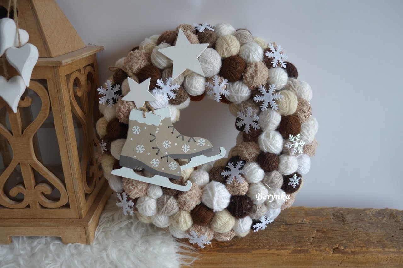 - je z různě velkých klubíček z vlny, ozdobený vločkami