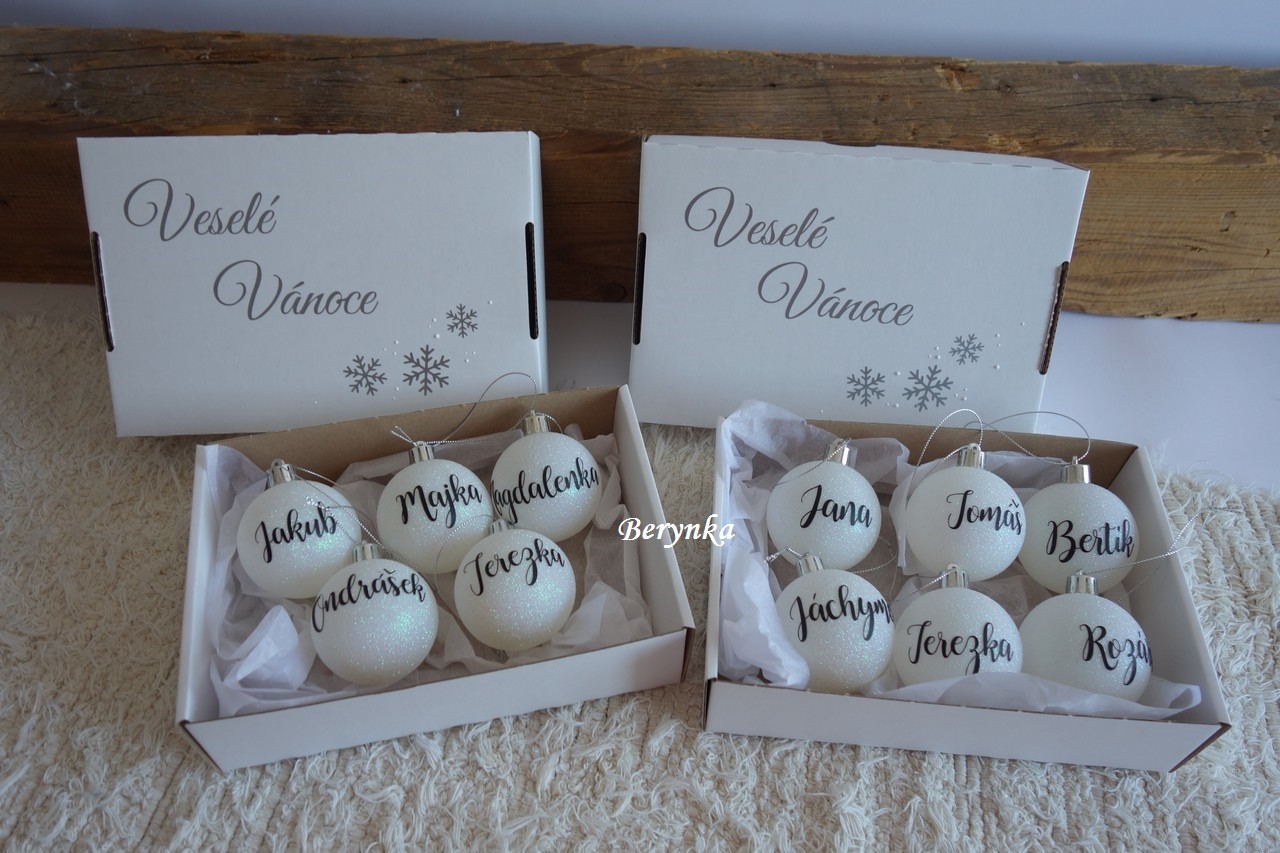- bílé ozdoby jsou ve dvou provedeních - matná a glitrová