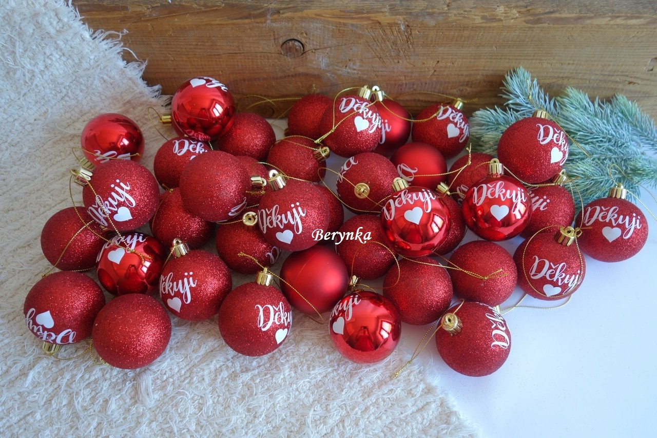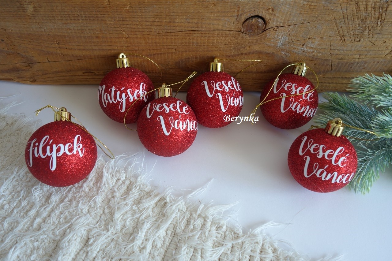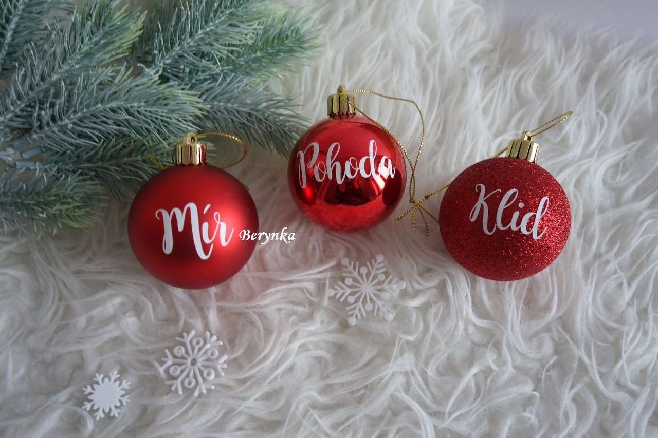 - červené ozdoby jsou ve třech provedeních - matná, lesklá a glitrová