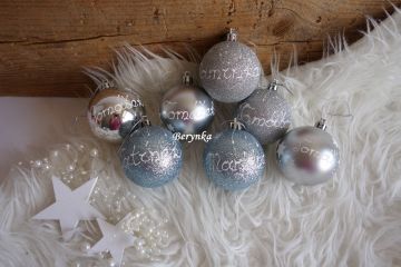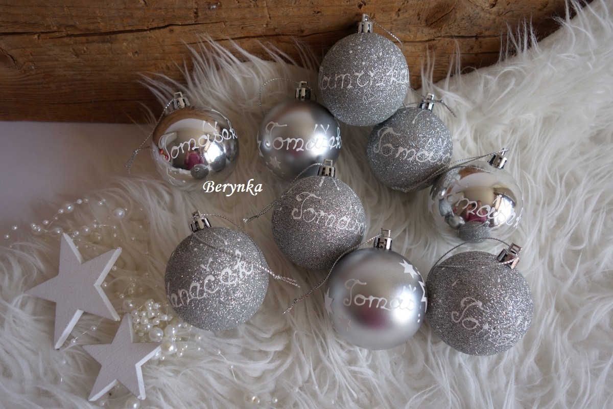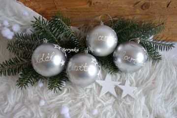 Vánoční baňky se jménem, malované - stříbrné