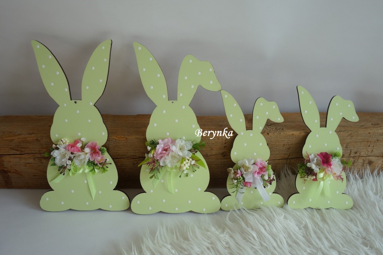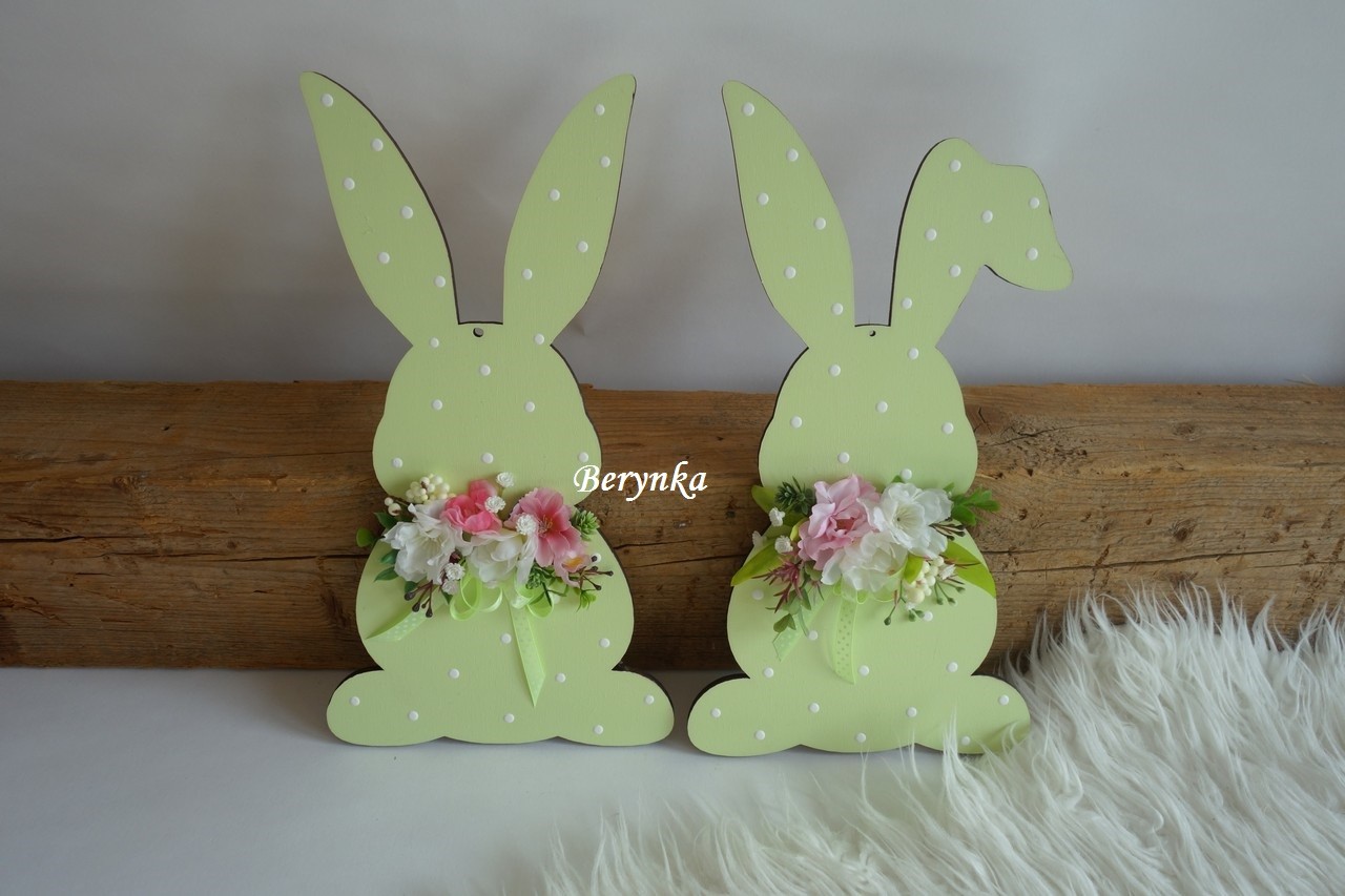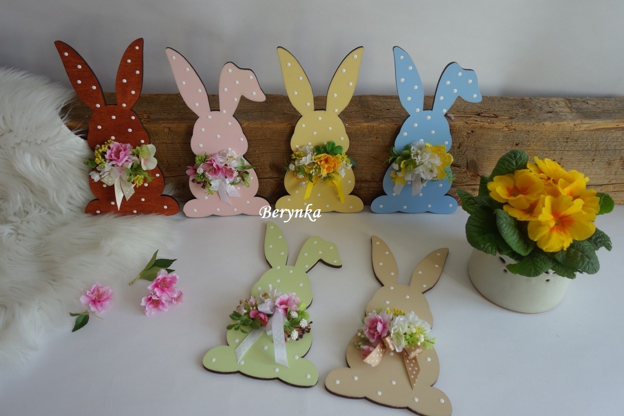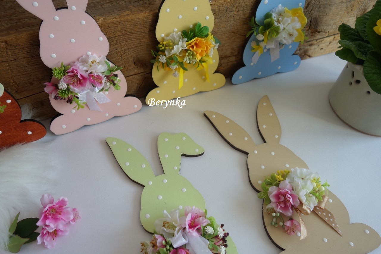 Dřevěný zajíček s květinami