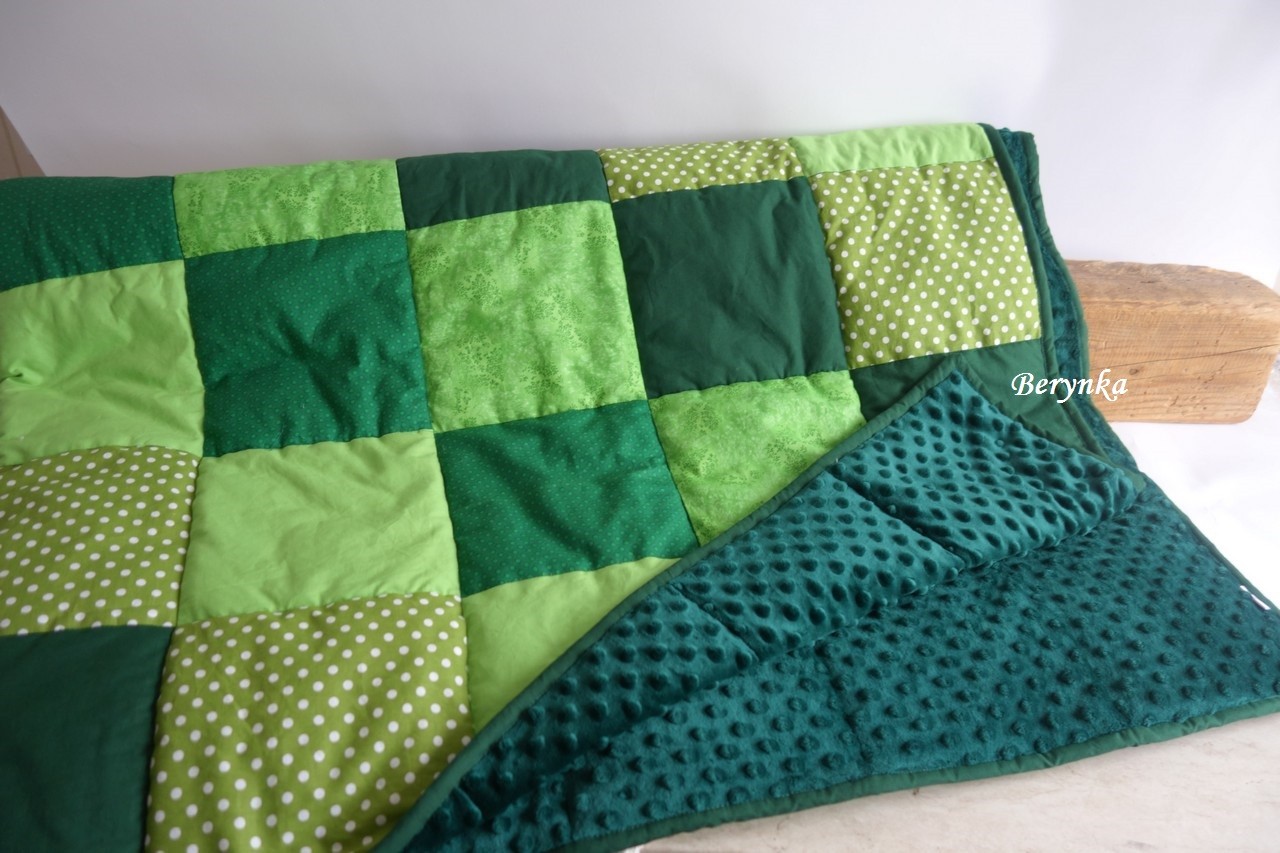 Patchworková bavlněná deka s minky - zelená